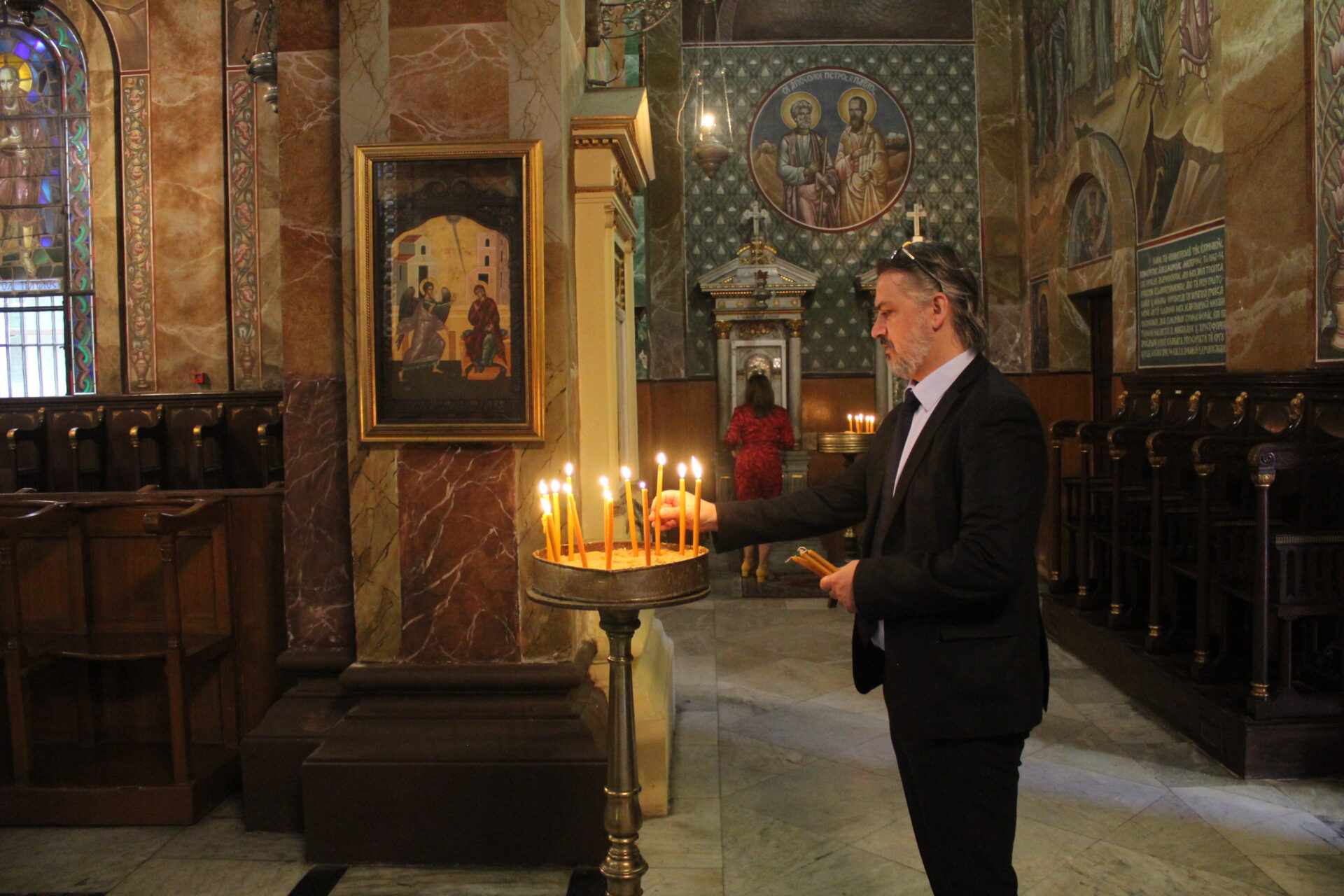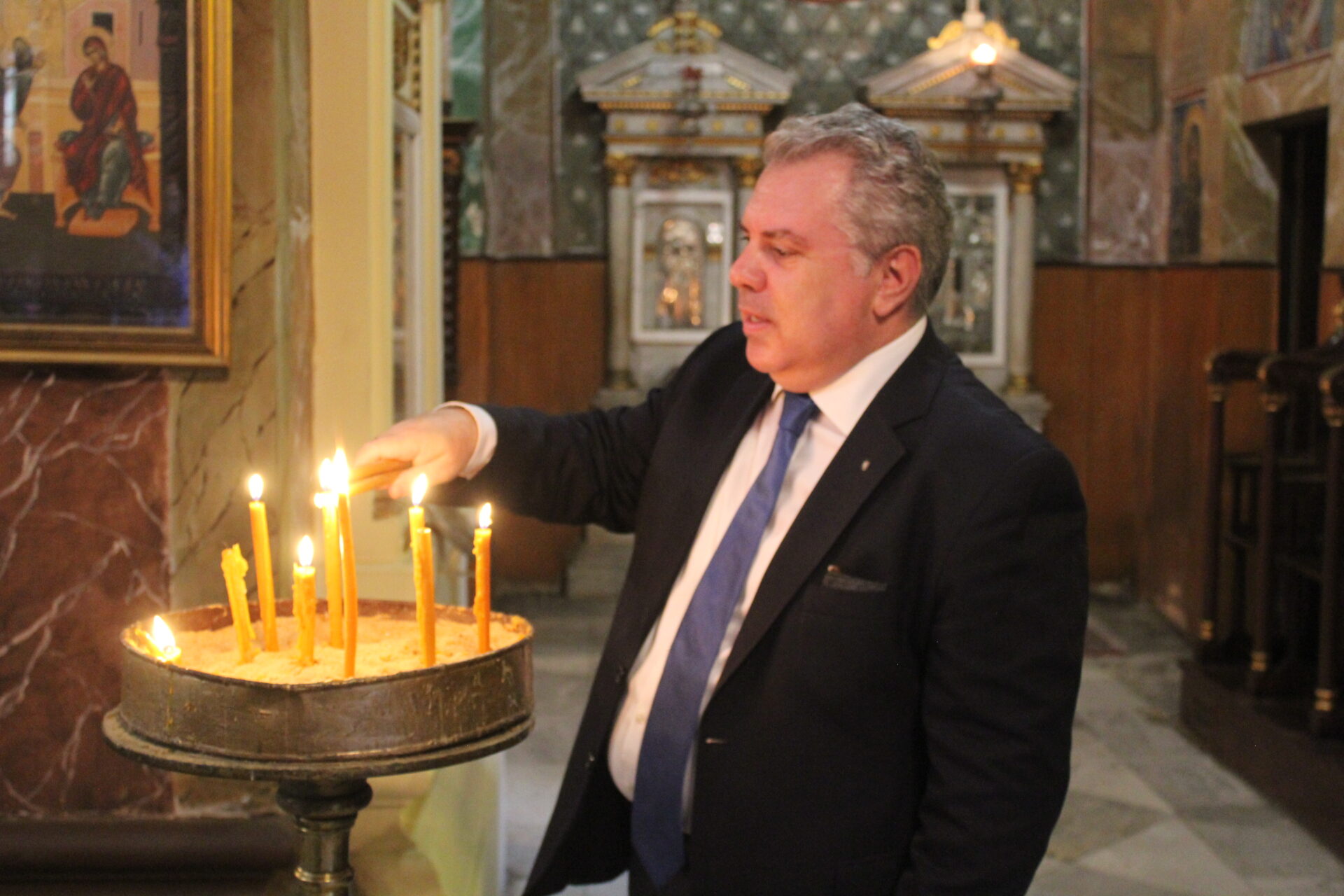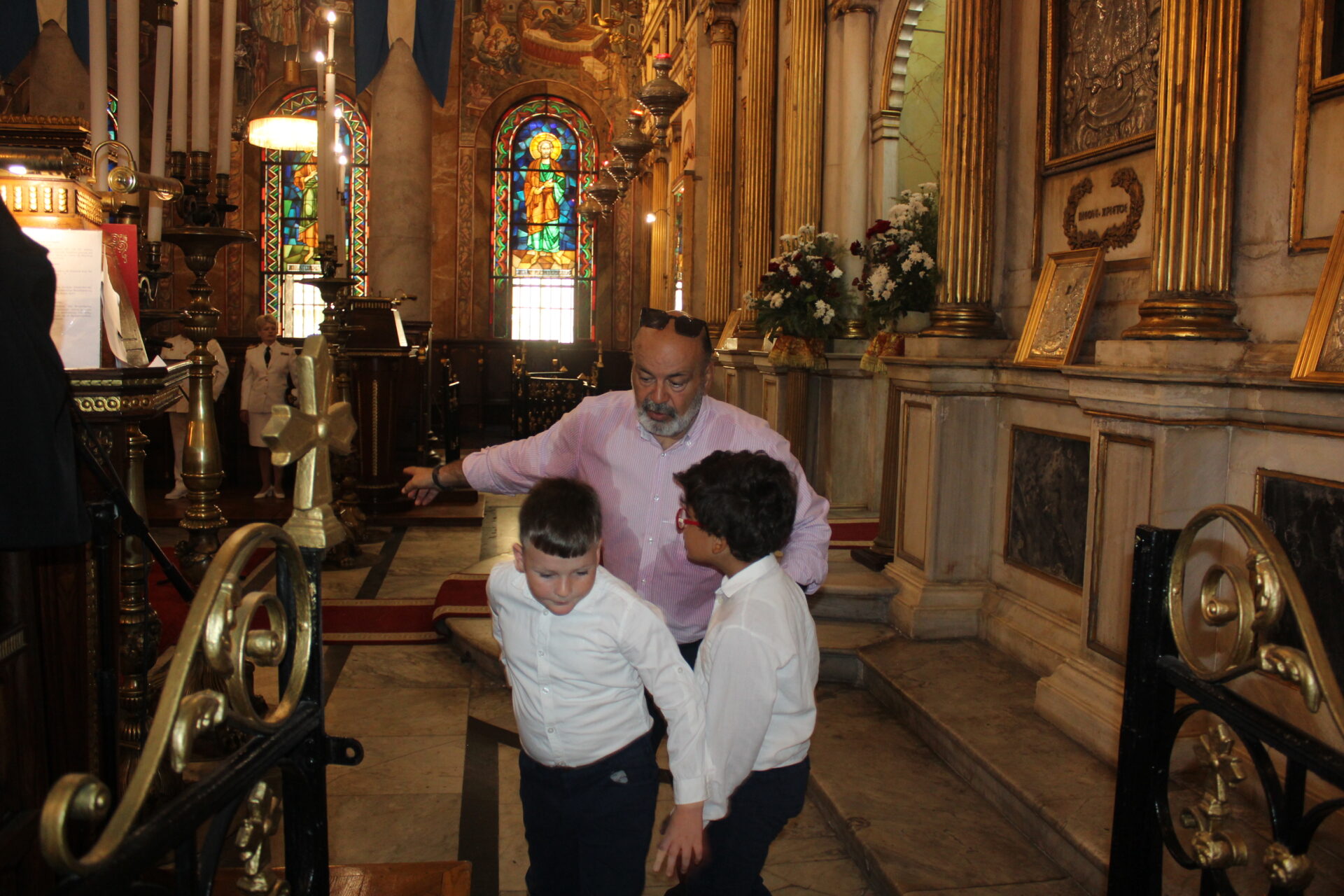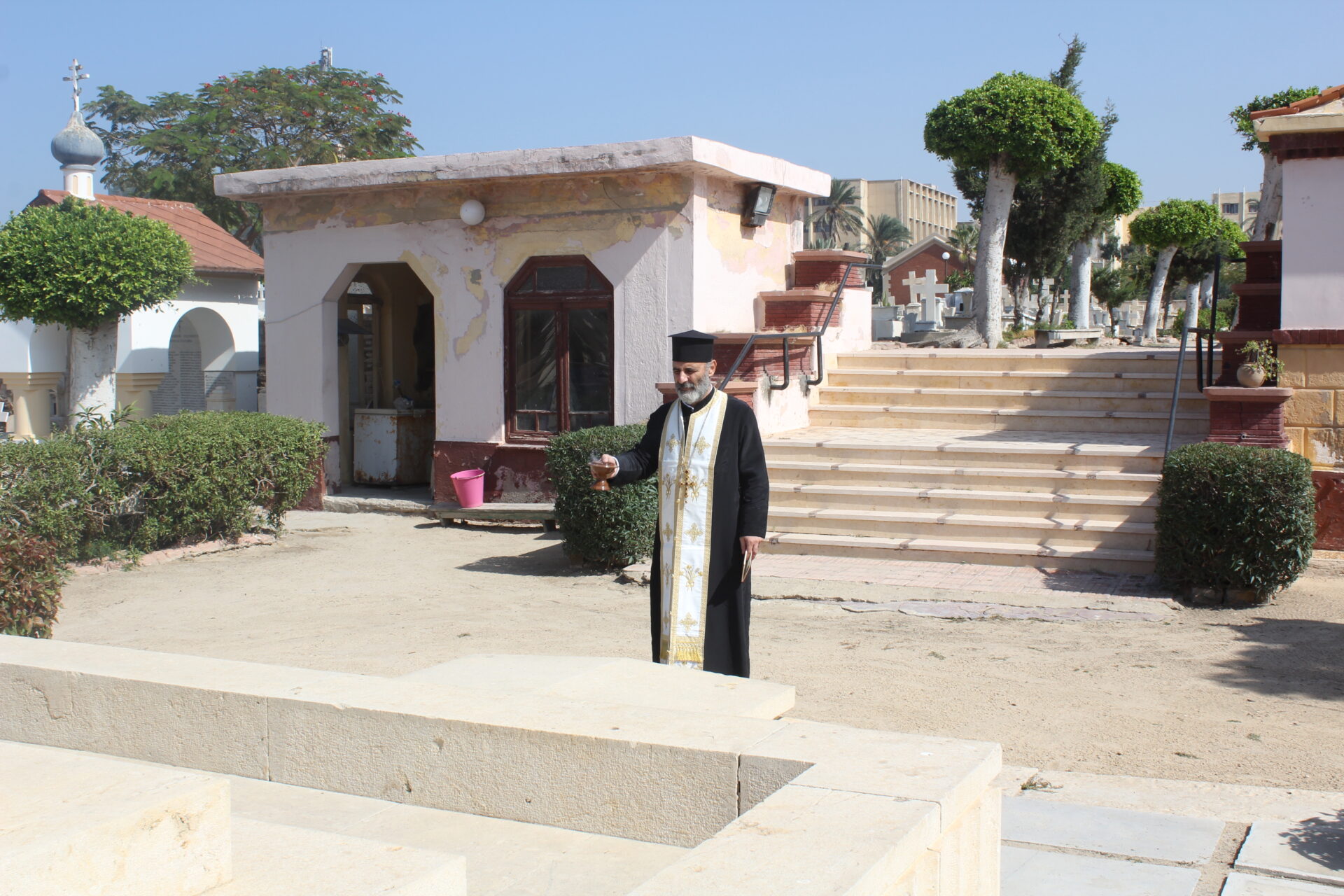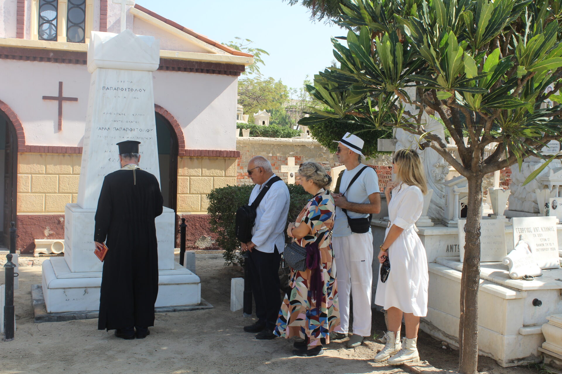 Μετά το εθιμοτυπικό κέρασμα στο αρχονταρίκι του Ναού, ο Αιδεσιμολογιώτατος Πρωτοπρεσβύτερος και συνάμα εκπαιδευτικός π. Πάνος Γαζής, τέλεσε επιμνημόσυνη δέηση στο Κοιμητήριο της Ελληνικής Κοινότητας Αλεξανδρείας στο Μνημείο των Πεσόντων Ικάρων.