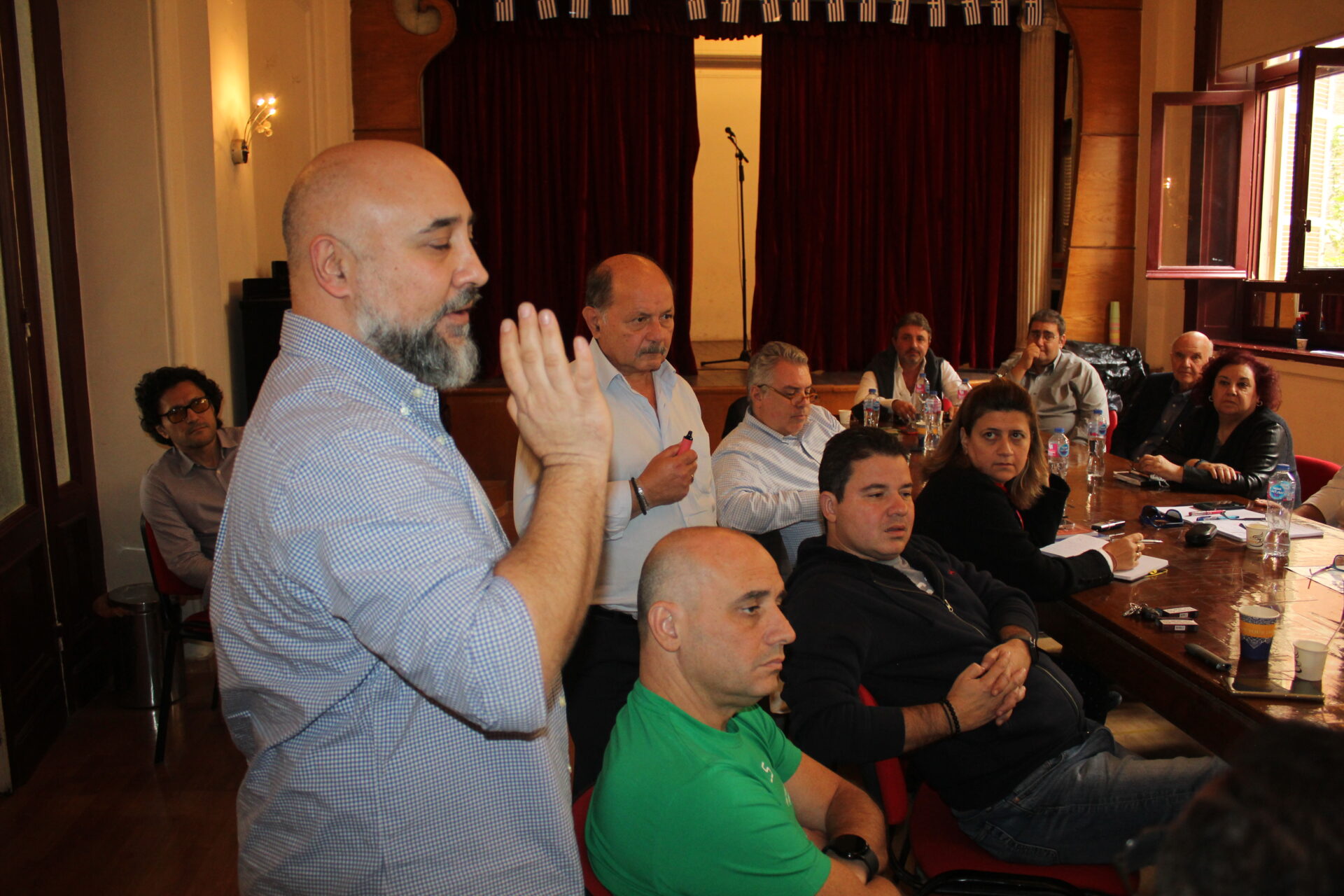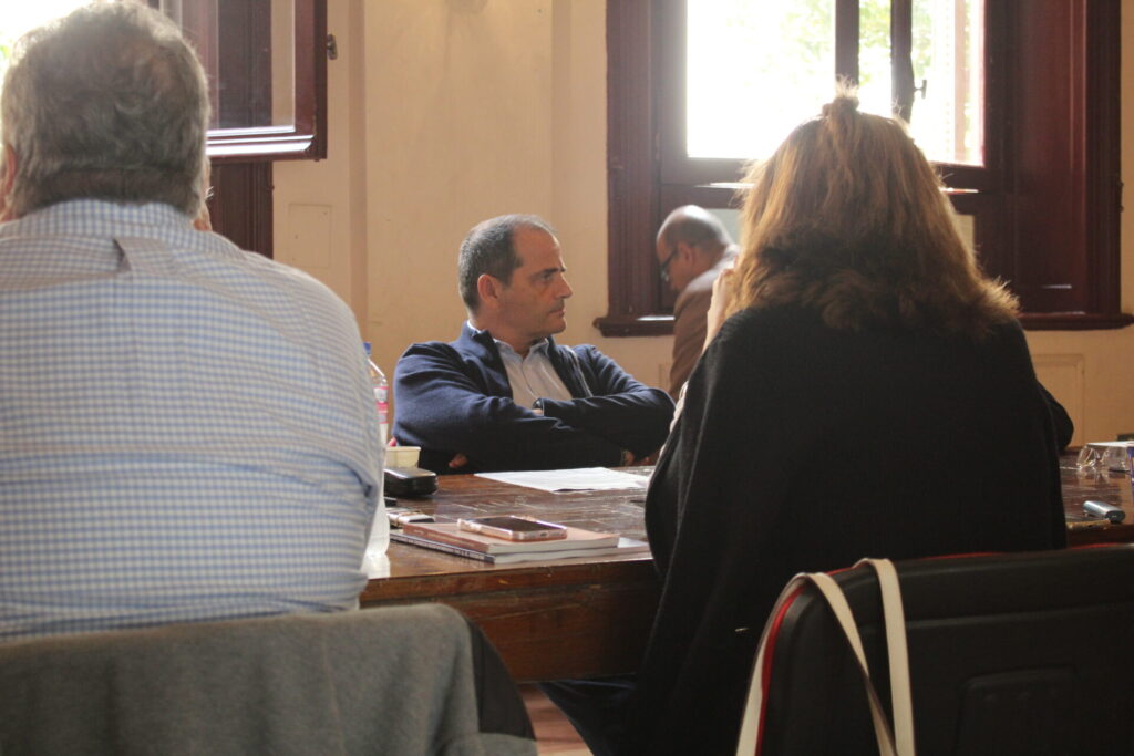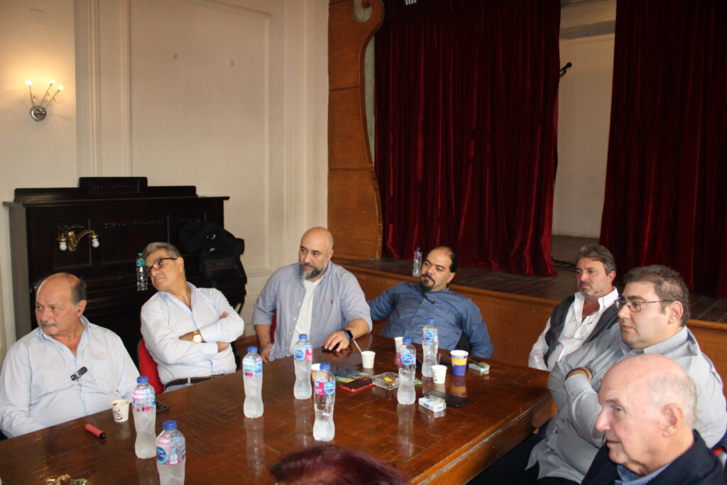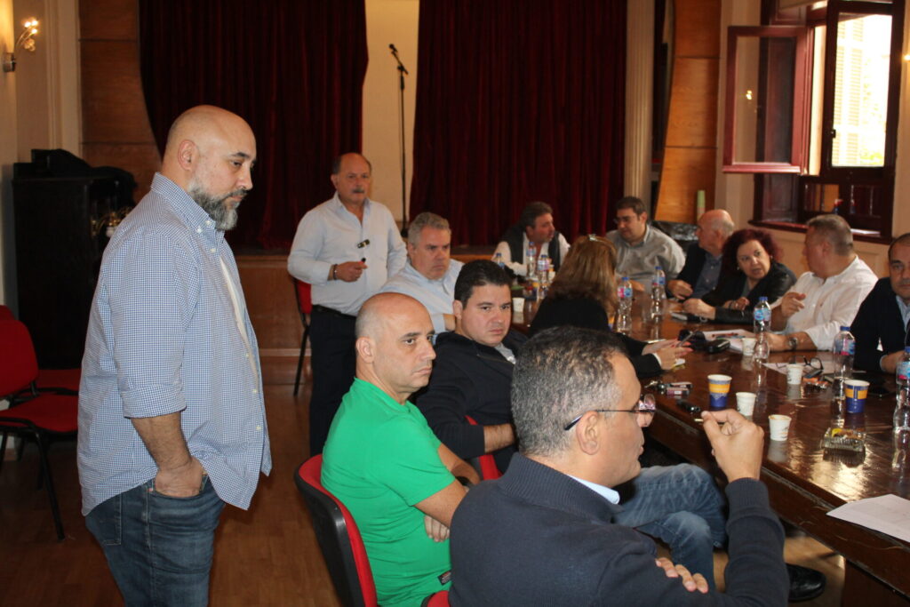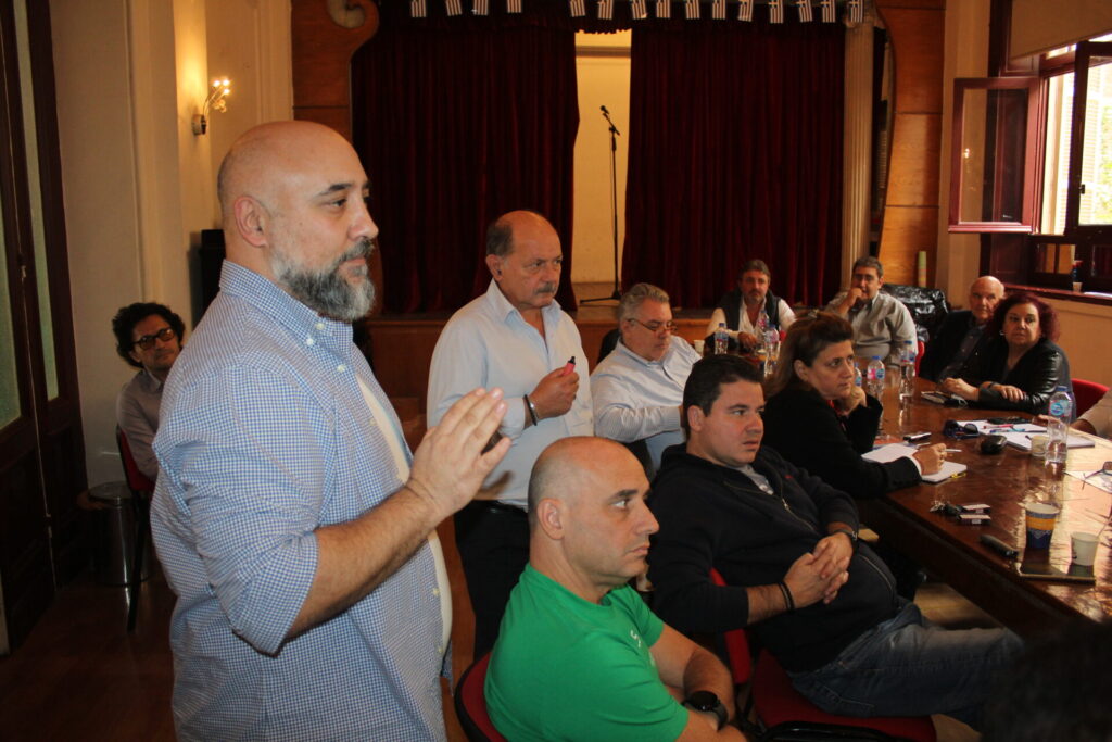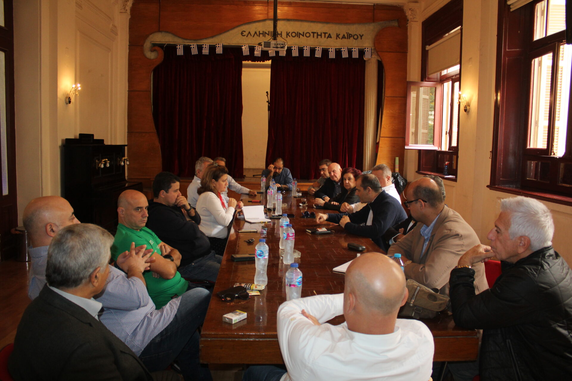 Ακολούθως όλοι κατευθύνθηκαν στο θέατρο της Αχιλλοπουλείου Σχολής όπου εκεί ο καθένας κάθισε γύρω από το τραπέζι των συσκέψεων, συναποτελώντας την ομήγυρη των πρώτων επαφών για την ανταλλαγή πληροφοριών, απόψεων και προτάσεων.