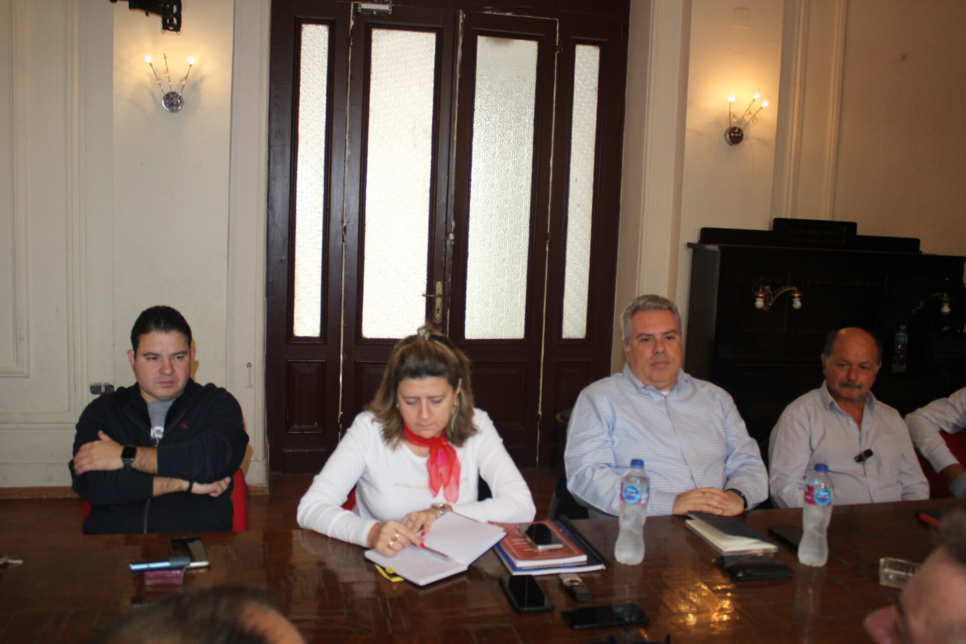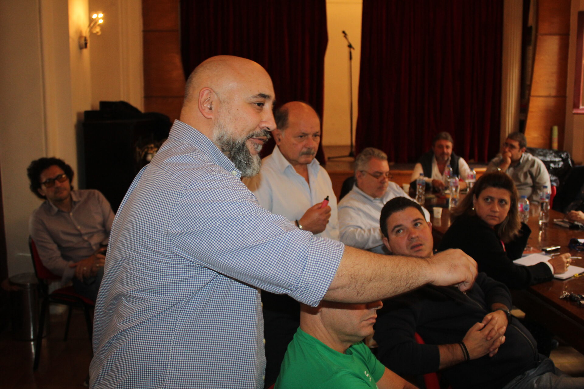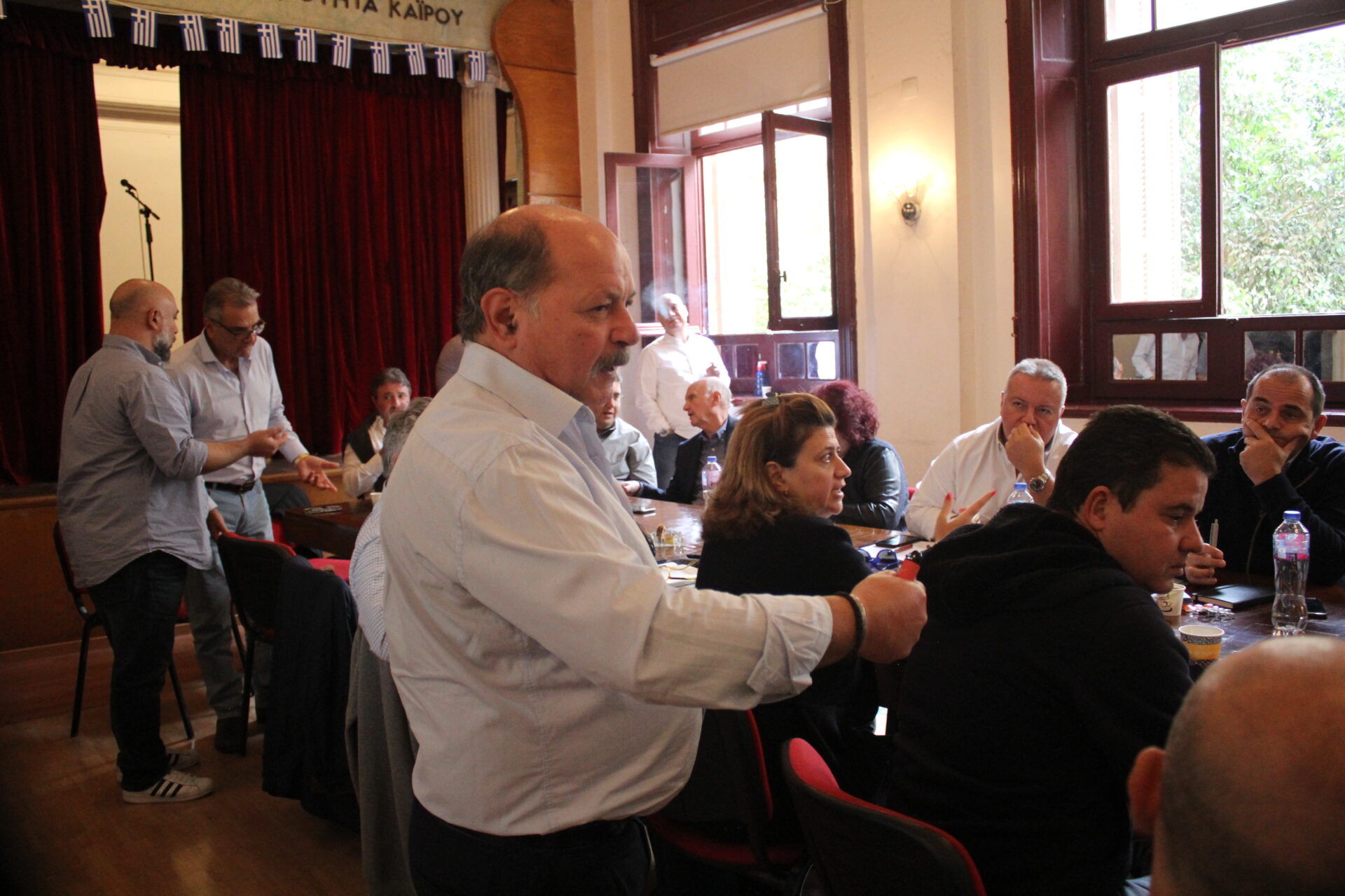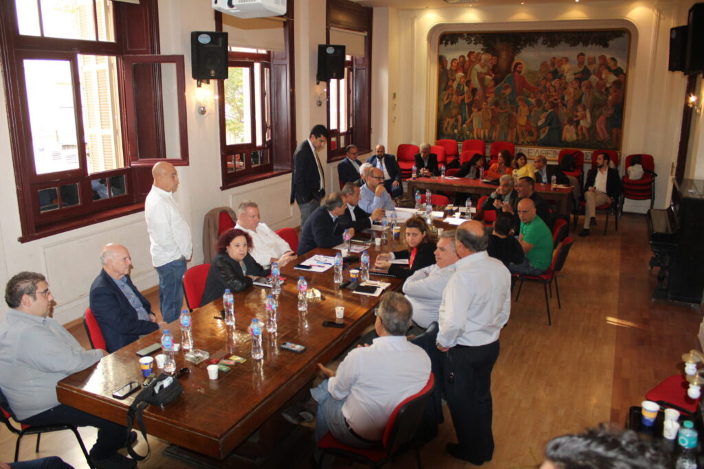 Ακολούθως όλοι κατευθύνθηκαν στο θέατρο της Αχιλλοπουλείου Σχολής όπου εκεί ο καθένας κάθισε γύρω από το τραπέζι των συσκέψεων, συναποτελώντας την ομήγυρη των πρώτων επαφών για την ανταλλαγή πληροφοριών, απόψεων και προτάσεων.