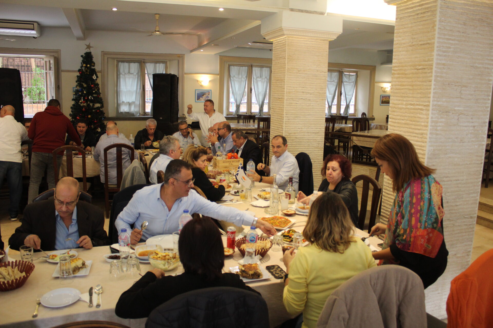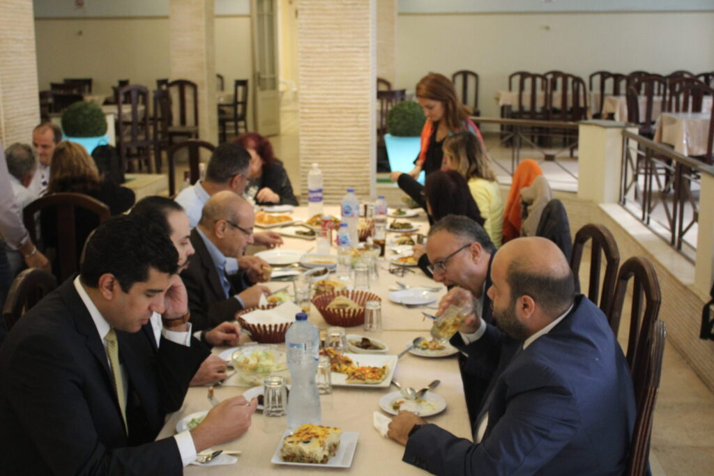 Και βέβαια δεν θα μπορούσε η εξαιρετική φιλοξενία να μη συνοδεύεται από ένα πλουσιότατο γεύμα, όπως το καθορίζει η αιγυπτιώτικη αρχοντιά και ευγένεια. Στην Ελληνική Στέγη λοιπόν, με χαλαρούς ρυθμούς και φιλική συντροφιά, απόλαυσαν όλοι οι συνδαιτυμόνες την συμποσιακή ευωχία, μεταξύ Καϊρινών και Αλεξανδρινών συναδέλφων!