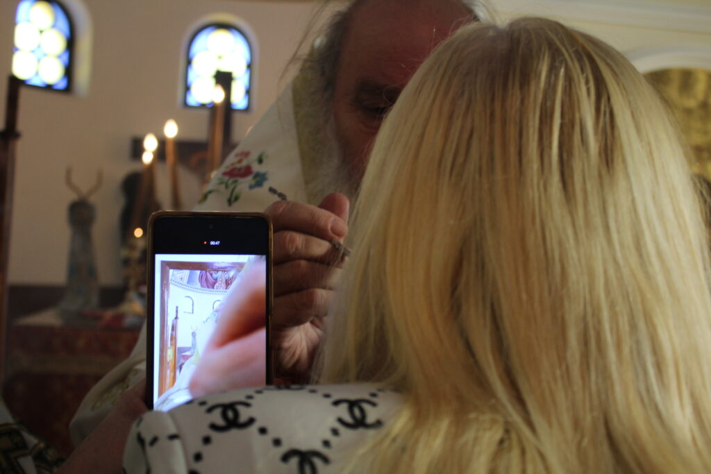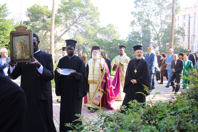 Συγκινητική ήταν η στιγμή της Περιφοράς της Αγίας Εικόνας πέριξ του Ναού, με αρκετούς εργαζόμενους στο Νοσοκομείο, ασθενείς και πιστούς να παρακολουθούν καθώς η πομπή με κατανυκτικότατα βάδιζε προς την είσοδο του Ναού, όπου εκεί ο Πατριάρχης τέλεσε το τελετουργικό των Υδάτων ραντίζοντας τους παρευρισκόμενους με τον Αγιασμό!