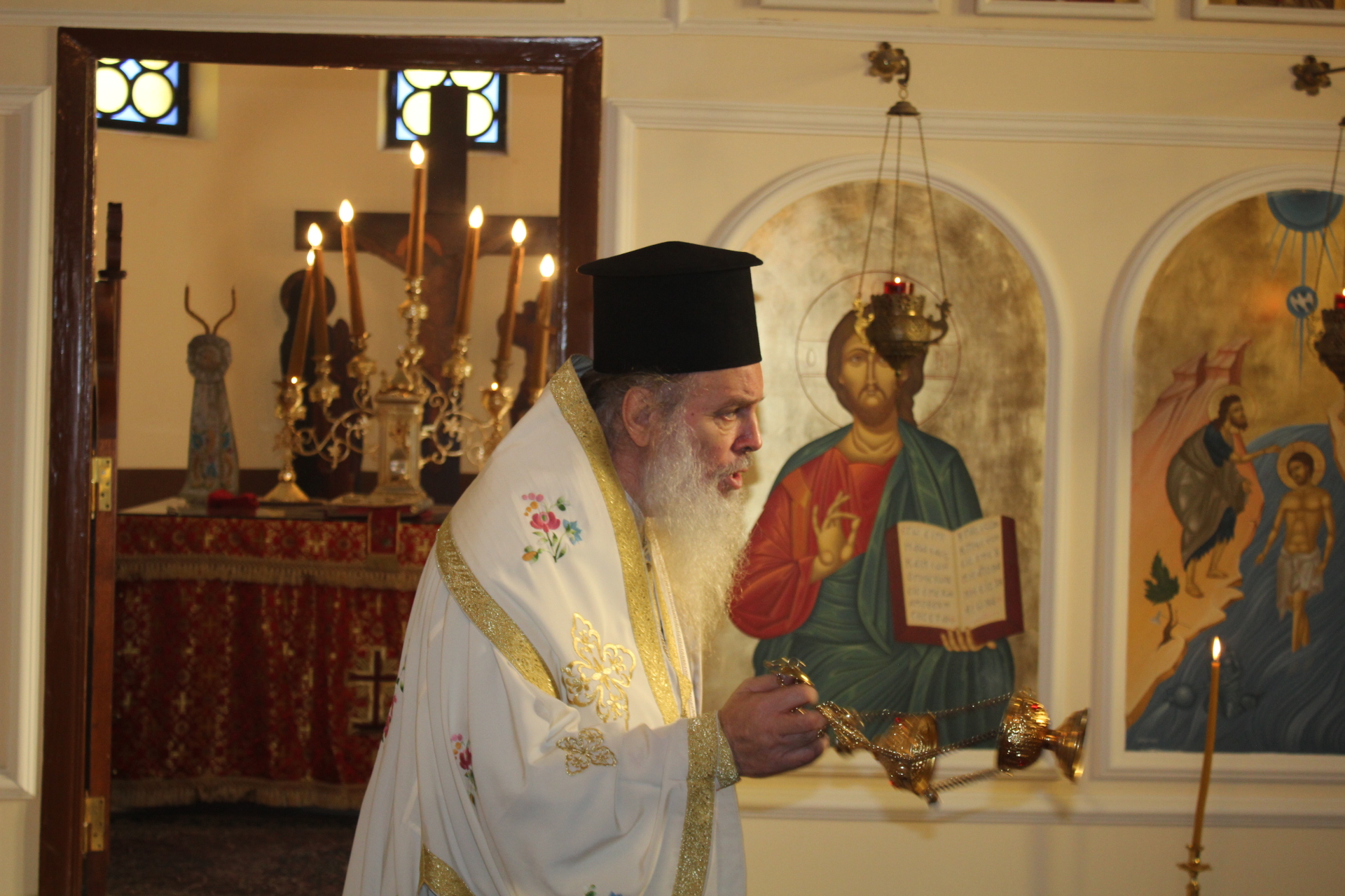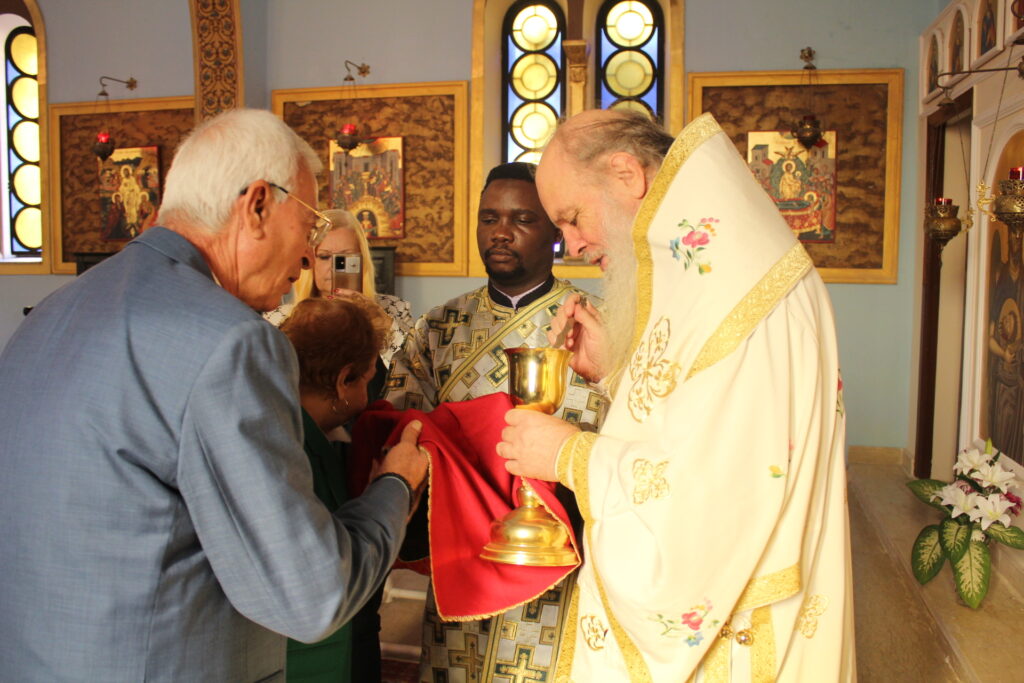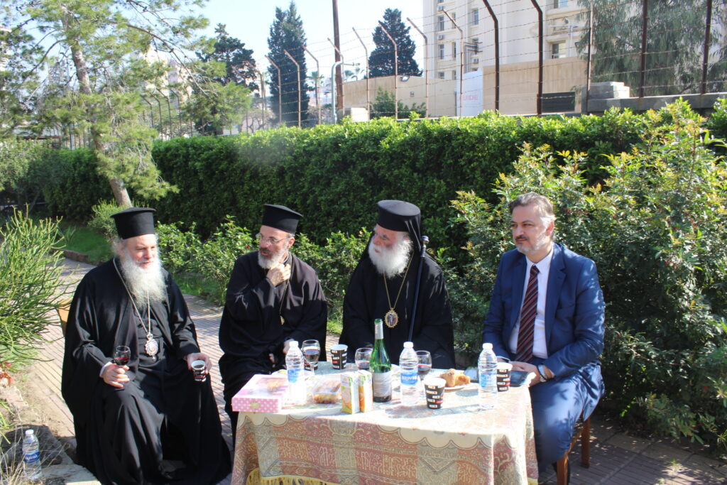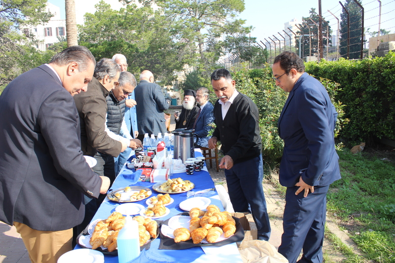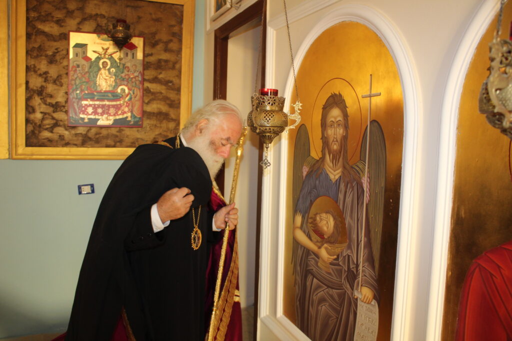 Ακολούθησε πλούσιο κέρασμα στο μπουφέ που στήθηκε στον περιβάλλοντα χώρο του Ναού, προσφορά του εορτάζοντος κ. Ιωάννη Σιόκα, με χυμούς, καφέδες και άφθονα καλούδια με τον Μακαριώτατο να συνομιλεί επ΄ ώρα με τους πιστούς και να δίνει τη νότα αισιοδοξίας με το γνωστό του χιούμορ και το γαλήνιο χαμόγελο, σε μια εποχή που η ανάταση ψυχής θεωρείται αναγκαία περισσότερο από ποτέ.