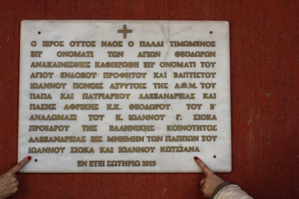 Ώσπου ο πρώην Πρόεδρος της Ελληνικής Κοινότητας Αλεξανδρείας και επιτυχημένος επιχειρηματίας κ. Ιωάννης Σιόκας, αποφάσισε ιδίοις εξόδοις να ανακαινίσει εκ βάθρων τον Ιερό Ναό, με νέες αγιογραφίες όπως η Πλατυτέρα που κοσμεί το Ιερό, ενώ παράλληλα αποκαταστάθηκαν όλες οι ζημίες. Αυτή η ευεργεσία του κ. Ιωάννη Σιόκα πραγματοποιήθηκε εις Μνήμη του παππού του Ιωάννη εκ του οποίου πήρε ο ίδιος το όνομά του κι έτσι ο Ιερός Ναός του Κοτσίκειου μετονομάσθηκε σε Αγίου Ιωάννη του Προδρόμου.