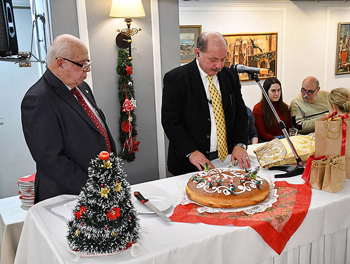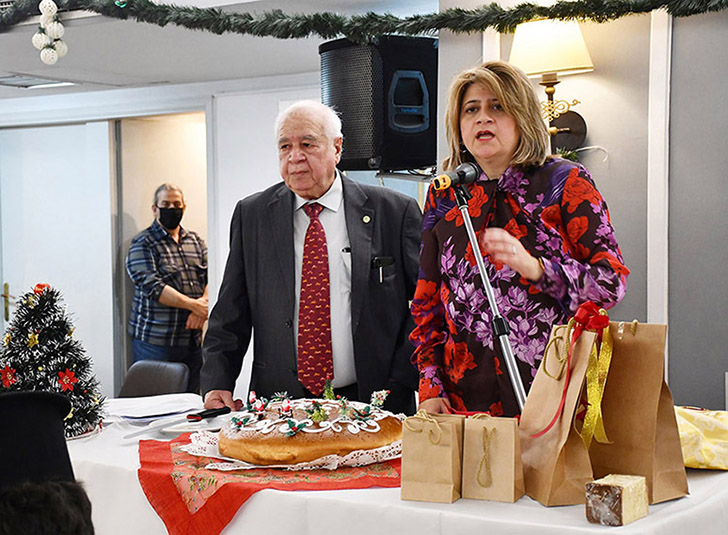 Ακολούθησαν οι χαιρετισμοί του Αντιπροέδρου της Ελληνικής Κοινότητας Αλεξανδρείας κ. Νικόλαου Κόπελου, της Γεν. Γραμματέας της Ελληνικής Κοινότητας Καΐρου κ. Βίλλυς Πολίτη – Ζουέ και του Επίτιμου Προέδρου της ΕΚΑ κ. Στέφανου Ταμβάκη που αναφέρθηκαν στις στενές σχέσεις που διατηρεί ο Σύνδεσμος με τις Ελληνικές Κοινότητες στην Αίγυπτο, επαίνεσαν το έργο που επιτελεί ο Σύνδεσμος, επισήμαναν ότι θα είναι πάντα δίπλα μας και ευχήθηκαν στα μέλη μας μια Καλή Χρονιά με υγεία.