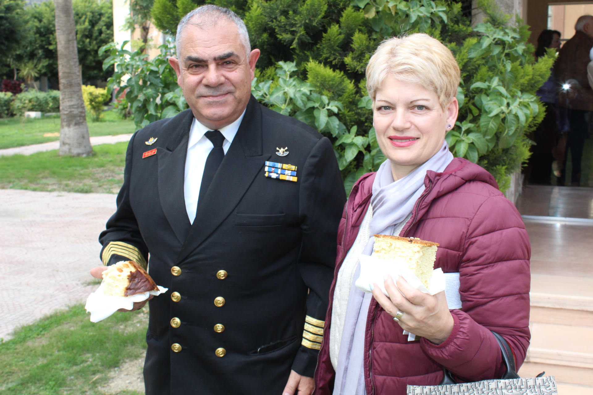 Ο Σύνδεσμος του Ελληνικού Πολεμικού Ναυτικού με το Αιγυπτιακό, Πλοίαρχος κ. Κωνσταντίνος Βαρουξής μετά της συζύγου του Αγγελικής, επίσης Πλοιάρχου, τίμησαν με την σειρά τους την εορταστική εκδήλωση.