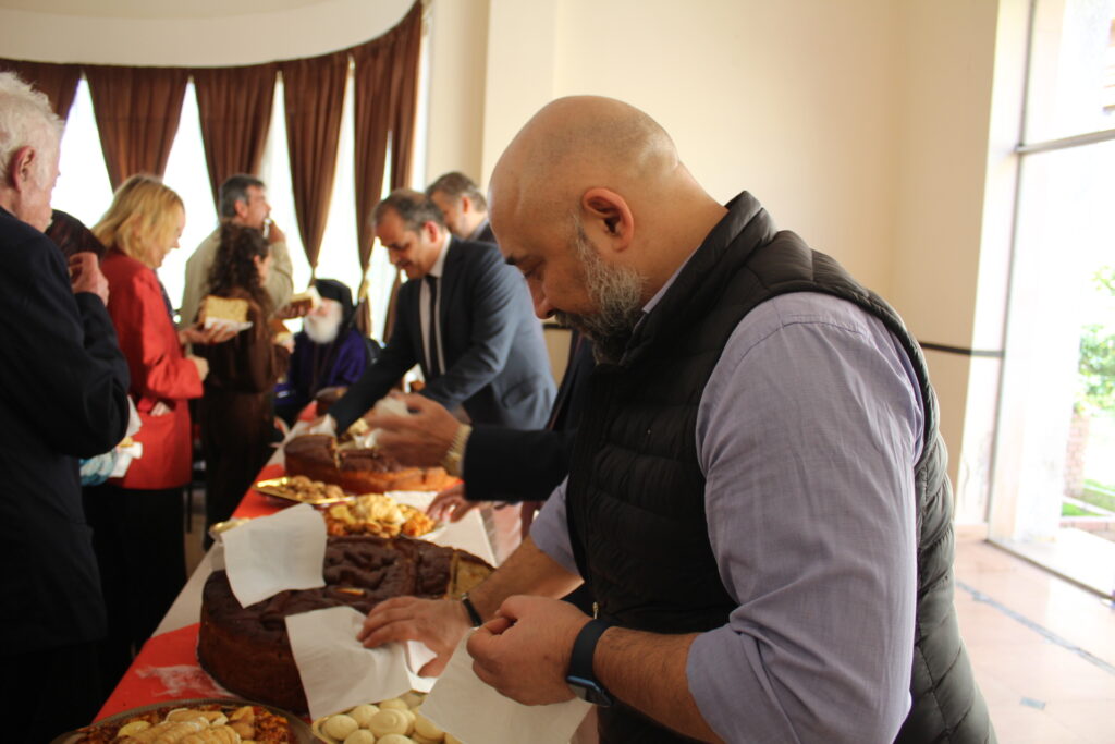 Οικοδεσπότης ο Πρόεδρος της Ελληνικής Κοινότητας Αλεξανδρείας κ. Ανδρέας Βαφειάδης, ο Αντιπρόεδρος κ. Ιωάννης Παπαδόπουλος, ο Γενικός Γραμματέας κ. Νικόλαος Κατσιμπρής, ο Οικονομικός Επόπτης κ. Εμμανουήλ Τατάκης και ο Διευθυντής κ. Γεώργιος Μπούλος, μαζί με όλο το προσωπικό του Οργανισμού υποδέχτηκαν με χαμόγελο και ευγενή φιλοξενία τους παριστάμενους παροίκους.