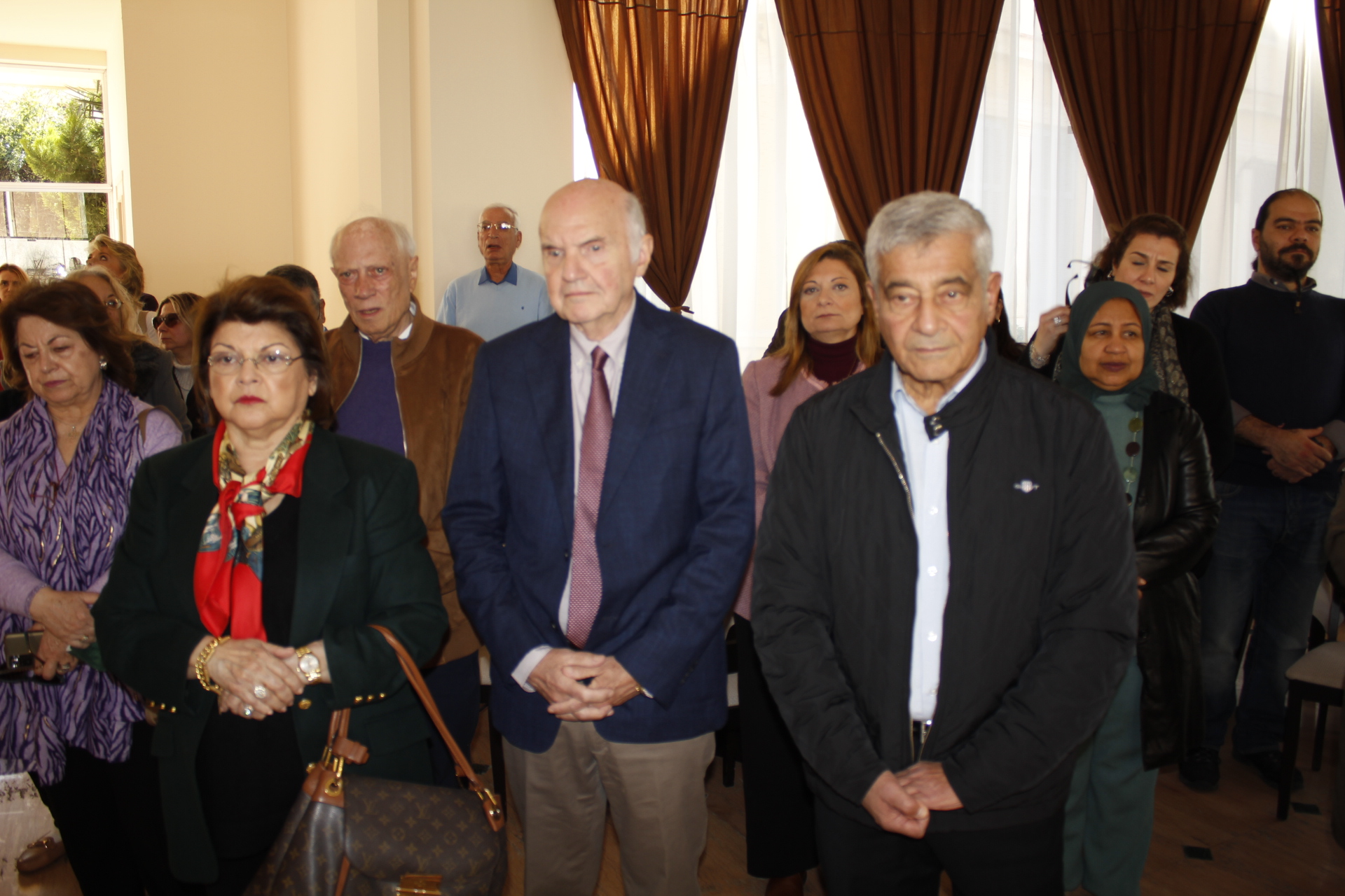 Ιδιαίτερα πρέπει να υπογραμμίσουμε την παρουσία μιας ομάδας εκλεκτών προσκεκλημένων, η οποία τίμησε την εορταστική εκδήλωση της Ελληνικής Κοινότητας. Ήταν οι φίλοι του επιτυχημένου Αλεξανδρινού διοικητή πολλών τραπεζών κ. Τάκη Αράπογλου και της συζύγου του Εβίτας ιστορικού τέχνης: κα. Μίνα Μωραΐτου Κουλουβάτου ιστορικός τέχνης και επιμελήτρια έργων τέχνης του Μουσείου Μπενάκη, οι επιχειρηματίες κ. Κωνσταντίνος και κα. Δανάη Φιλιππίδου, κ. Γιάννης και κα. Λυδία Γιώτη, και ο κ. Περικλής και κα. Κλεοπάτρα Σταματιάδη.