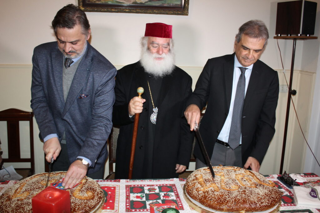 Και τώρα ας κόψουμε την Αγιοβασιλόπιτα του Συλλόγου μας με τη συνοδεία των παιδιών που θα μας πουν αρχιμηνιά κι αρχιχρονιά» ήταν ο επίλογος του Πατριάρχη Αλεξανδρείας. Στη συνέχεια ευλόγησε τις τρεις πίτες κι έδωσε το μαχαίρι να κόψει πρώτα η Πρόεδρος και οικοδέσποινα. Ακολούθησαν ο Γενικός Πρόξενος κ. Ιωάννης Πυργάκης με τον Αντιπρόεδρο της Ελληνικής Κοινότητας Αλεξανδρείας κ. Ιωάννη Παπαδόπουλο και την Γενική Γραμματέα της Κυπριακής Αδελφότητος κα. Μαρία Παυλίδου.