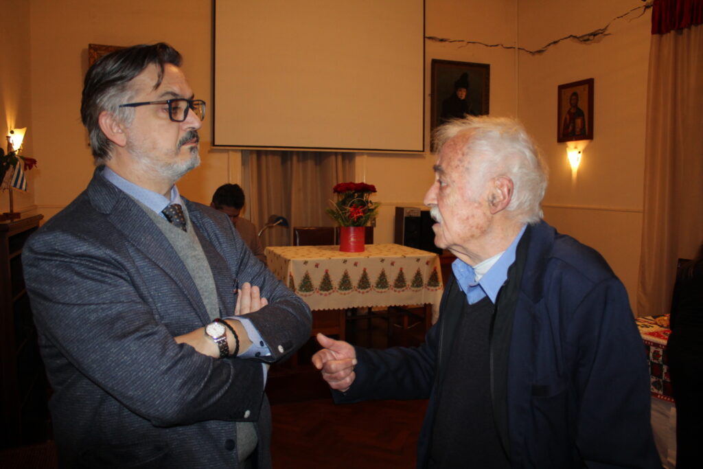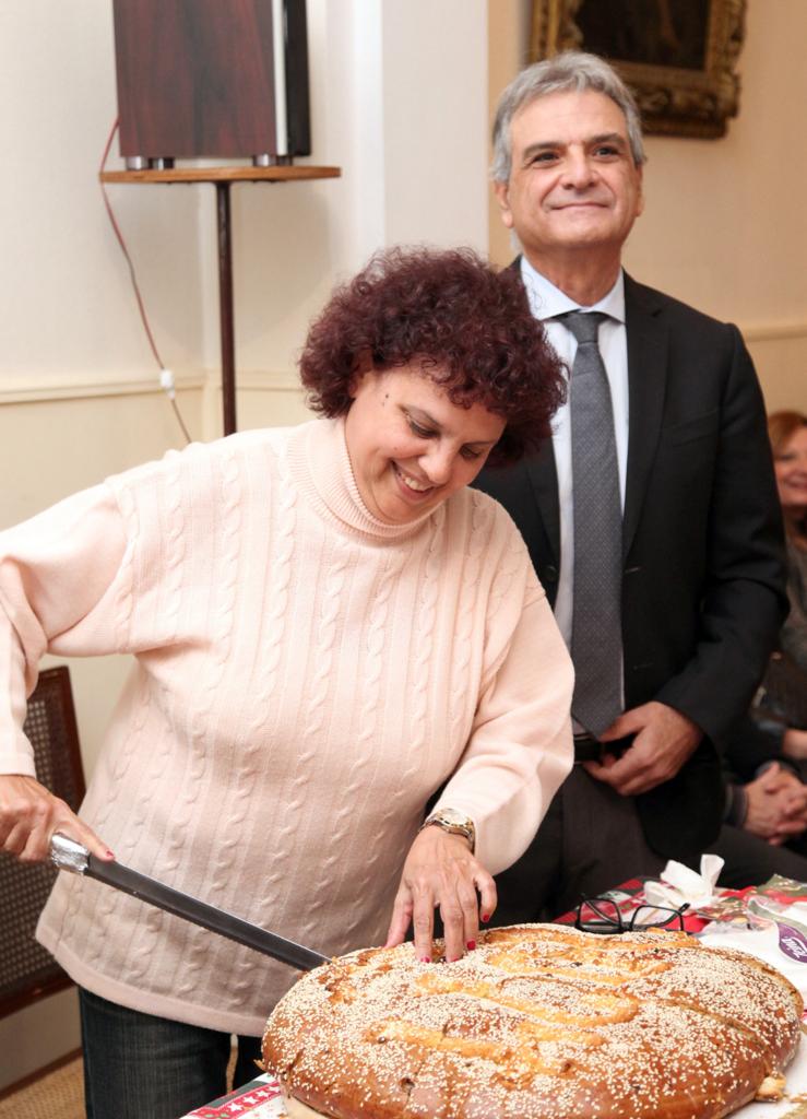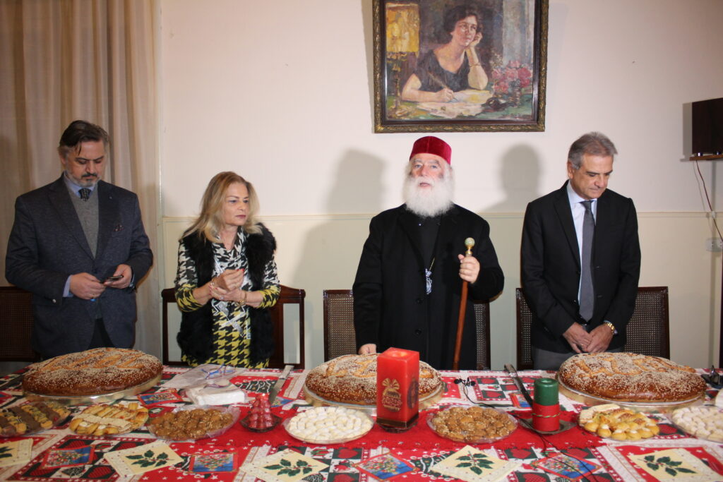 Πρόεδρέ μου μέσα από την καρδιά μου, χρόνια πολλά να έχετε. Σας ευχαριστώ που μαζί με τους συνεργάτες σας ζεσταίνετε αυτό τον τόπο. Θυμάμαι πόσο ωραία τα έλεγε προχθές ο Γενικός Πρόξενος, ότι δεν πρέπει να στενοχωρούμεθα με το παρελθόν, αλλά να βλέπουμε αισιόδοξα πάντα το μέλλον. Σας εύχομαι μέσα από την καρδιά μου χρόνια πολλά και πάντα να έχετε αισιοδοξία. Να βλέπετε εμένα, που πάντα έχω αισιοδοξία καθώς φτιάχνω το ένα και μόλις τελειώνει ξεκινάμε το άλλο. Έτσι κι εσείς να έχετε την ευλογία μου και να σας βλέπω κάθε χρόνο, να ιλοχαρεί και να ανοίγει η καρδιά μας. Χρόνια πολλά και ευλογημένα».