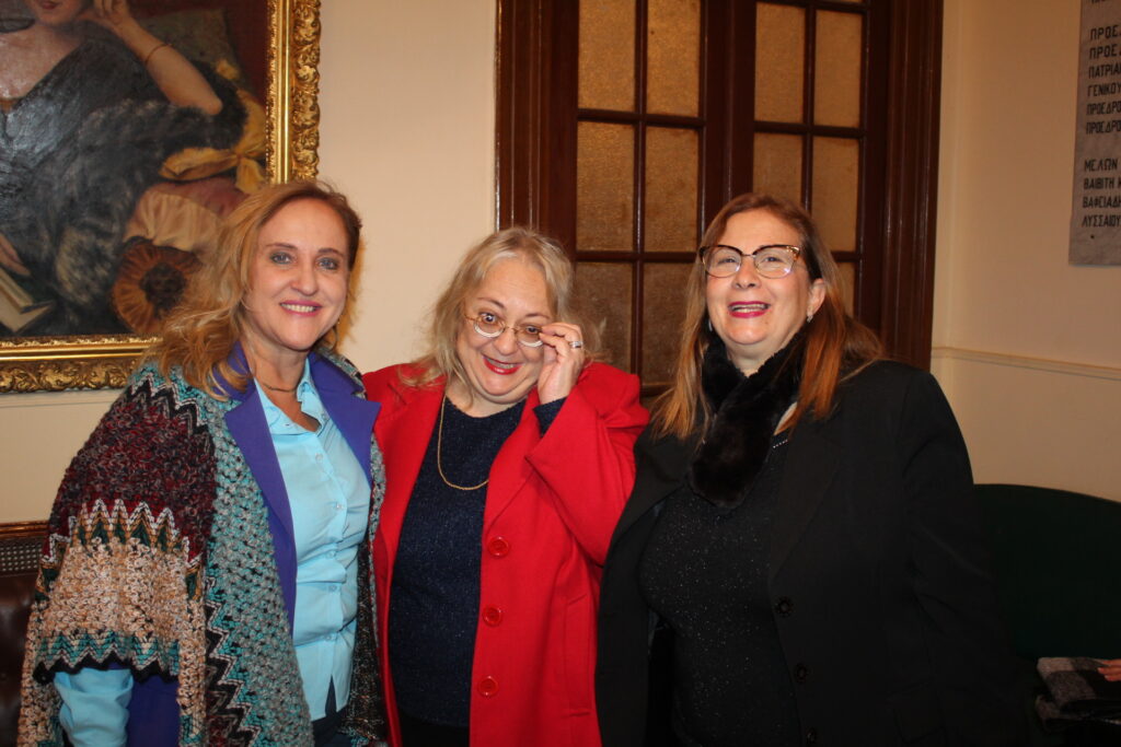 Να θυμηθούμε τις συζύγους των Μεγάλων Ευεργετών της Ελληνικής μας Κοινότητας, οι οποίες συχνά συναθροίζονταν σ αυτήν εδώ την αίθουσα αναβαθμίζοντας τα Γράμματα και τις Τέχνες μέσα από τα φιλολογικά σαλόνια τους!