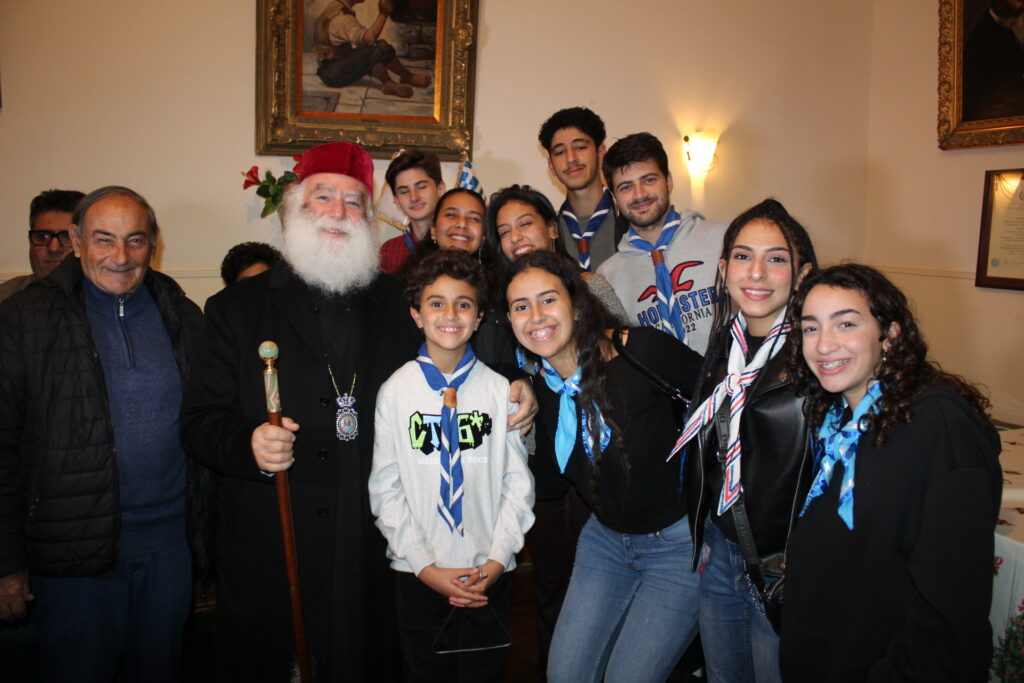 Μάλιστα ο Μακαριώτατος εισχώρησε χαμογελαστός στην παρέα των προσκόπων που τραγουδούσαν τα κάλαντα κι άρχισε μαζί τους ωσάν μικρός κι αυτός στην ψυχή και στην καρδιά το τραγούδι. Διπλά του ο Γενικός Έφορος Διοίκησης του Προσκοπικού Σώματος κ. Άρης Μαρκοζάννης έπαιζε το ρόλο του μαέστρου.