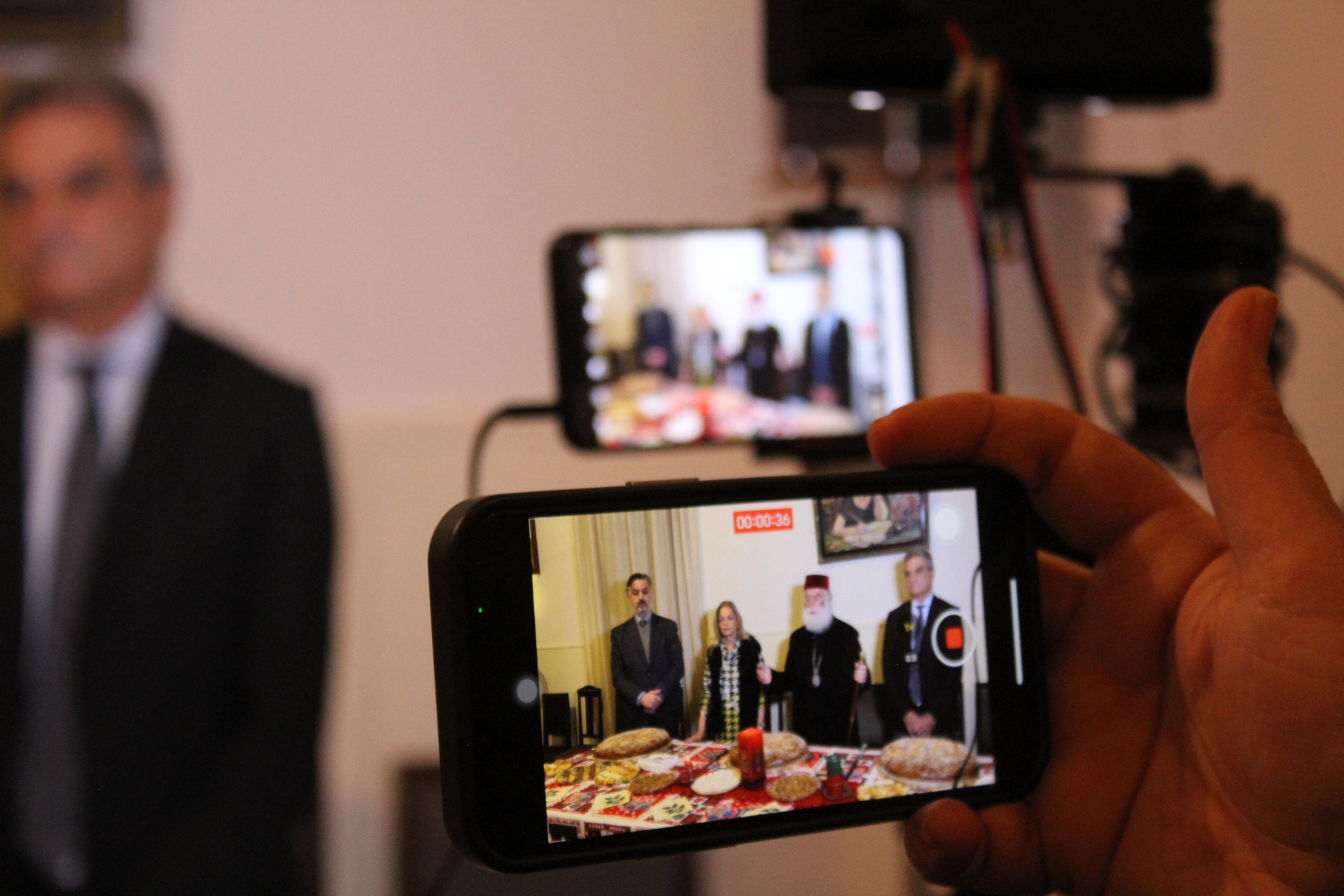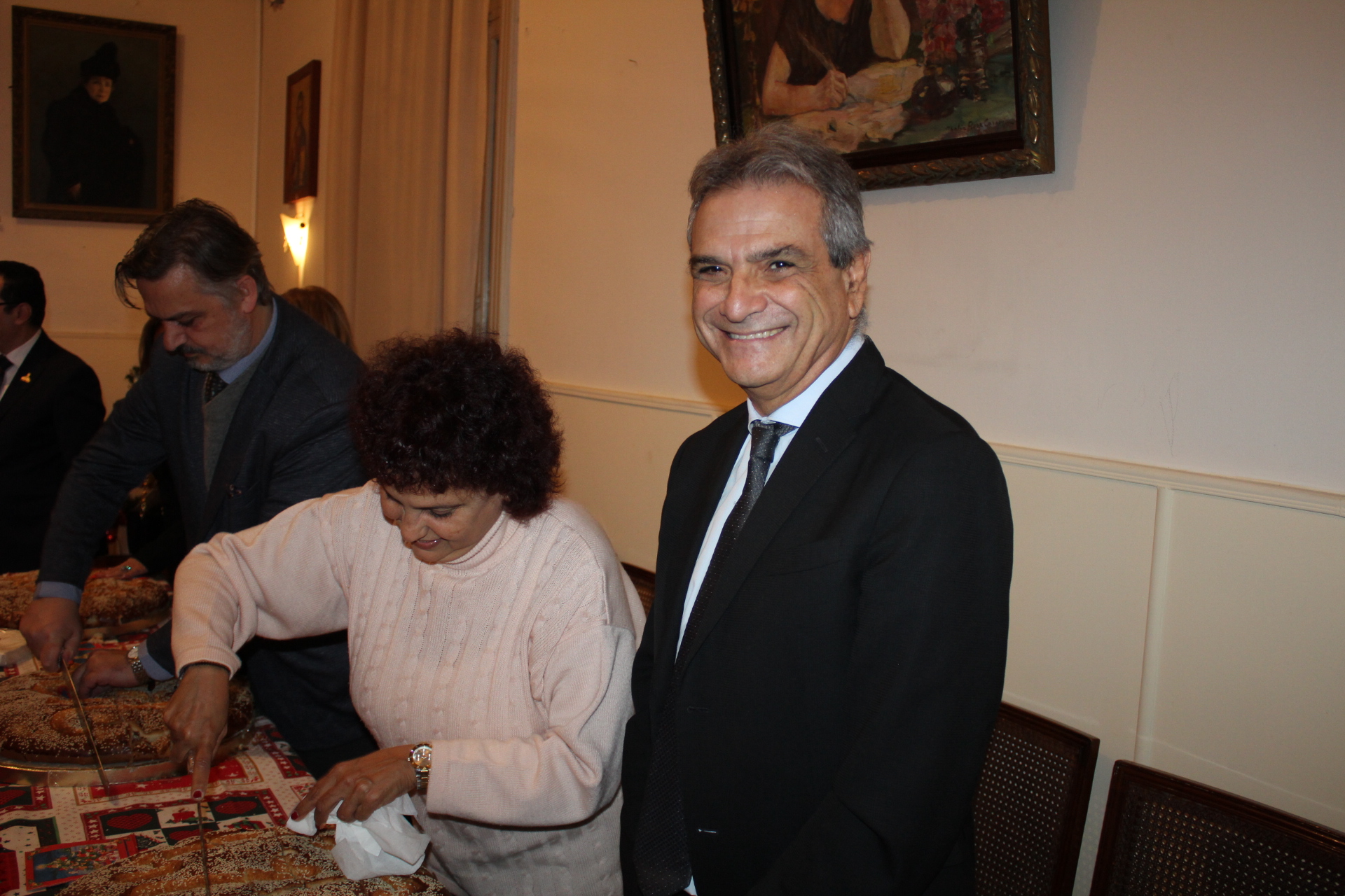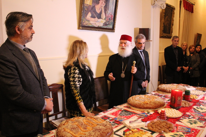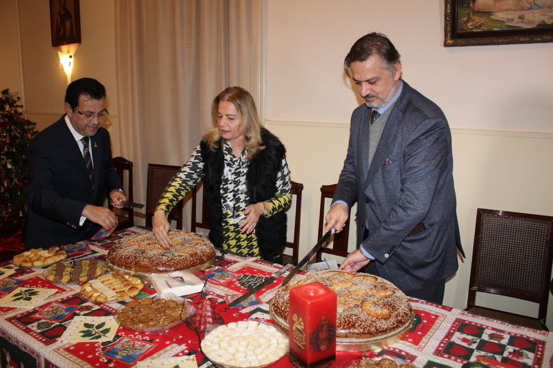 Πρόεδρέ μου μέσα από την καρδιά μου, χρόνια πολλά να έχετε. Σας ευχαριστώ που μαζί με τους συνεργάτες σας ζεσταίνετε αυτό τον τόπο. Θυμάμαι πόσο ωραία τα έλεγε προχθές ο Γενικός Πρόξενος, ότι δεν πρέπει να στενοχωρούμεθα με το παρελθόν, αλλά να βλέπουμε αισιόδοξα πάντα το μέλλον. Σας εύχομαι μέσα από την καρδιά μου χρόνια πολλά και πάντα να έχετε αισιοδοξία. Να βλέπετε εμένα, που πάντα έχω αισιοδοξία καθώς φτιάχνω το ένα και μόλις τελειώνει ξεκινάμε το άλλο. Έτσι κι εσείς να έχετε την ευλογία μου και να σας βλέπω κάθε χρόνο, να ιλοχαρεί και να ανοίγει η καρδιά μας. Χρόνια πολλά και ευλογημένα».