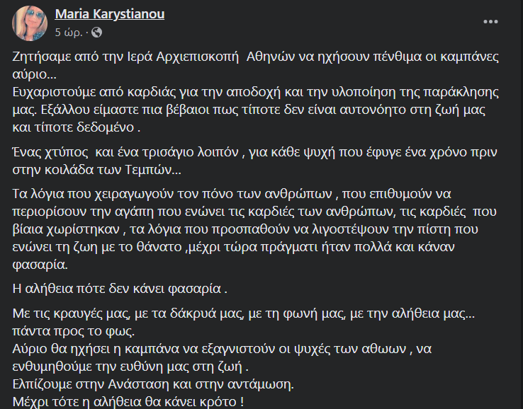 Οι Πένθιμες Καμπάνες των Τεμπών