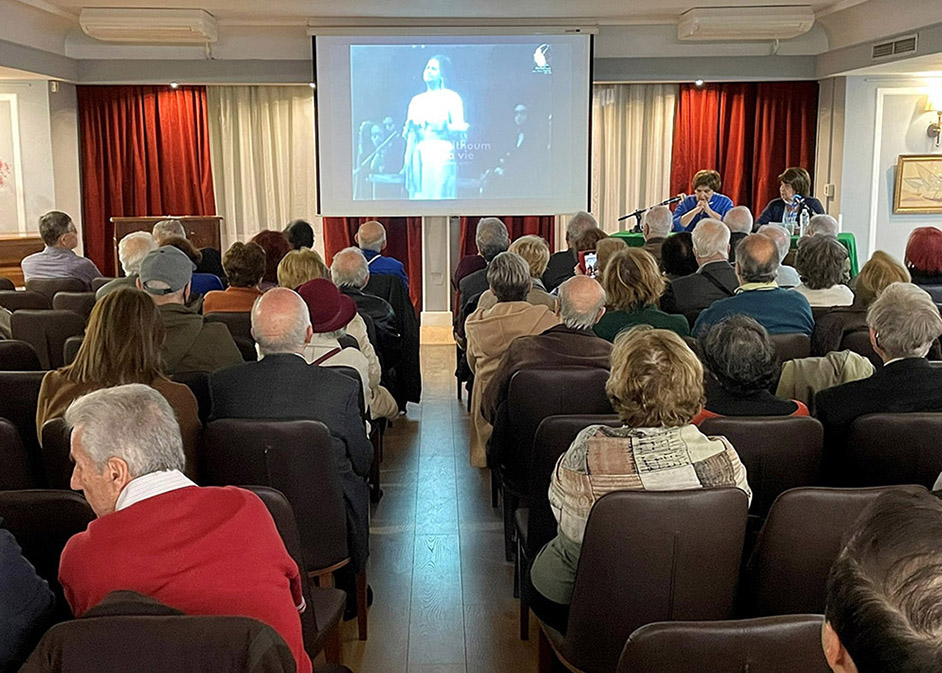 Στη διάρκεια της εκδήλωσης γνωρίσαμε καλύτερα την περίφημη αοιδό και την μοναδική μουσική διαδρομή της μέσα από πλούσιο φωτογραφικό υλικό και αποσπάσματα video, τα οποία επιμελήθηκε ο Τάκης Σφακιανόπουλος.