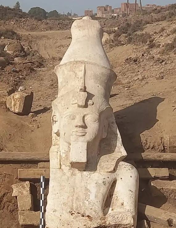 Αρχαιολόγοι ανακάλυψαν γιγαντιαίο άγαλμα στην “πόλη του Ερμή” – Μυστήριο με το διπλό στέμμα και τη βασιλική κόμπρα στο κεφάλι