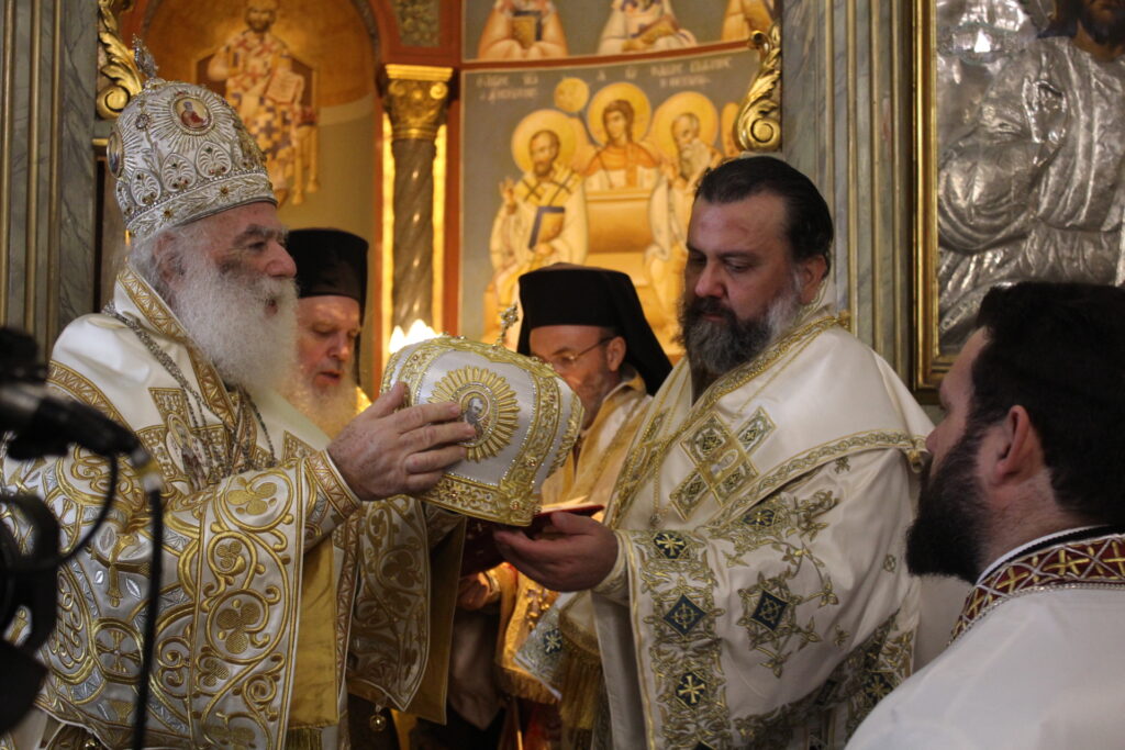 Εὑρισκόμενος ἐνώπιον τῆς ὡραίας Πύλης καὶ ἀτενίζων τὸ πρόσωπον τοῦ Ποιμένος μας, τοῦ σήμερον μεταδιδόντος μοι μὲ τὰ μαρτυρικὰ καὶ ἁγιασμένα χέρια Του τὸν τρίτο καὶ ὕψιστον βαθμὸν τῆς ἱερωσύνης, ἤτοι τὸ τῆς ἀρχιερωσύνης λειτούργημα, ἐνθυμοῦμαι τὰ λόγια τοῦ Ἀποστόλου Παύλου πρὸς τὸν ἀγαπημένο του μαθητὴ καὶ Ἐπίσκοπο: