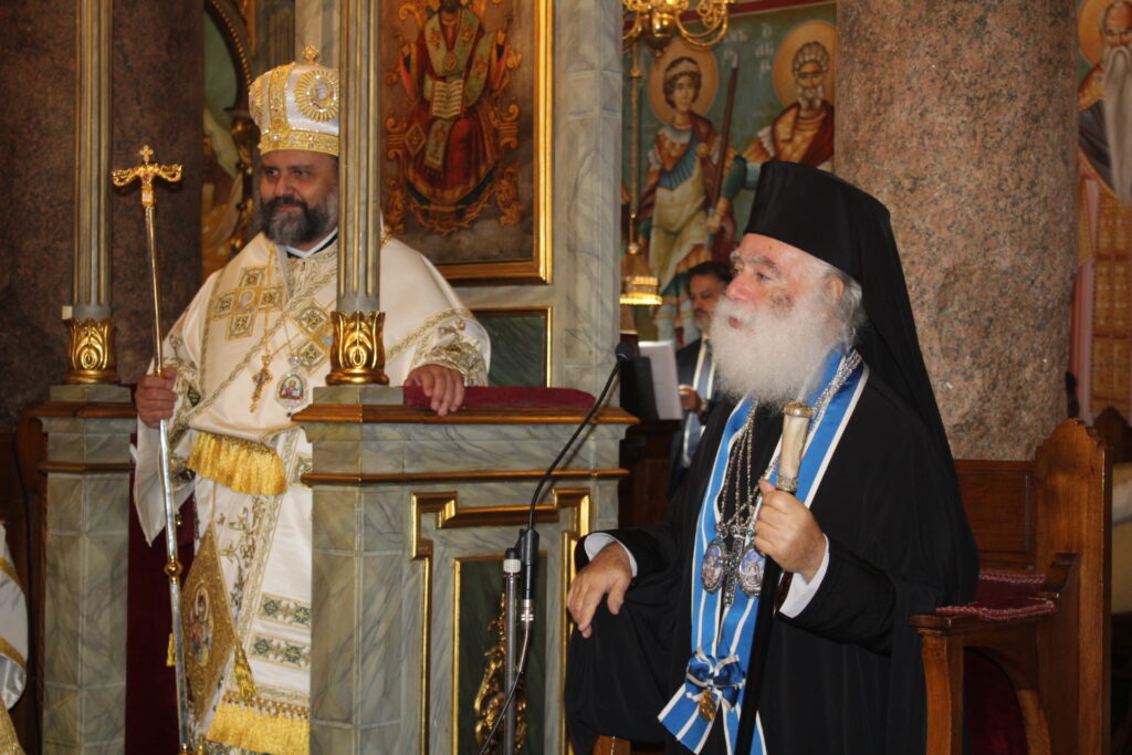 Σεβασμιώτατε ἅγιε Πτολεμαΐδος κ. Παντελεήμων, ἀρχιγραμματέα τῆς Ἁγίας καὶ Ἱερᾶς Συνόδου, ἕνα εὐχαριστῶ δὲν εἶναι σίγουρα ἀρκετὸ γιὰ ἕναν ἀρχιερέα τοῦ Θρόνου ποὺ μοῦ στάθηκε δίπλα μου σὲ ὅλη τὴ διάρκεια τῆς διακονίας μου ὡς πατριαρχικοῦ ἐπιτρόπου, ὡς πατέρας, ἀδελφός, παγηγοριά καὶ στήριγμα στὶς θλίψεις καὶ τὶς δοκιμασίες μου. Ἐλπίζω ὅτι οἱ δεσμοί ποὺ μᾶς ἑνώνουν θὰ μείνουν ἕως τέλους ἀδιάρρηκτοι. Προσβλέπω στὶς εὐχές καὶ τὴν βοήθειά σας.