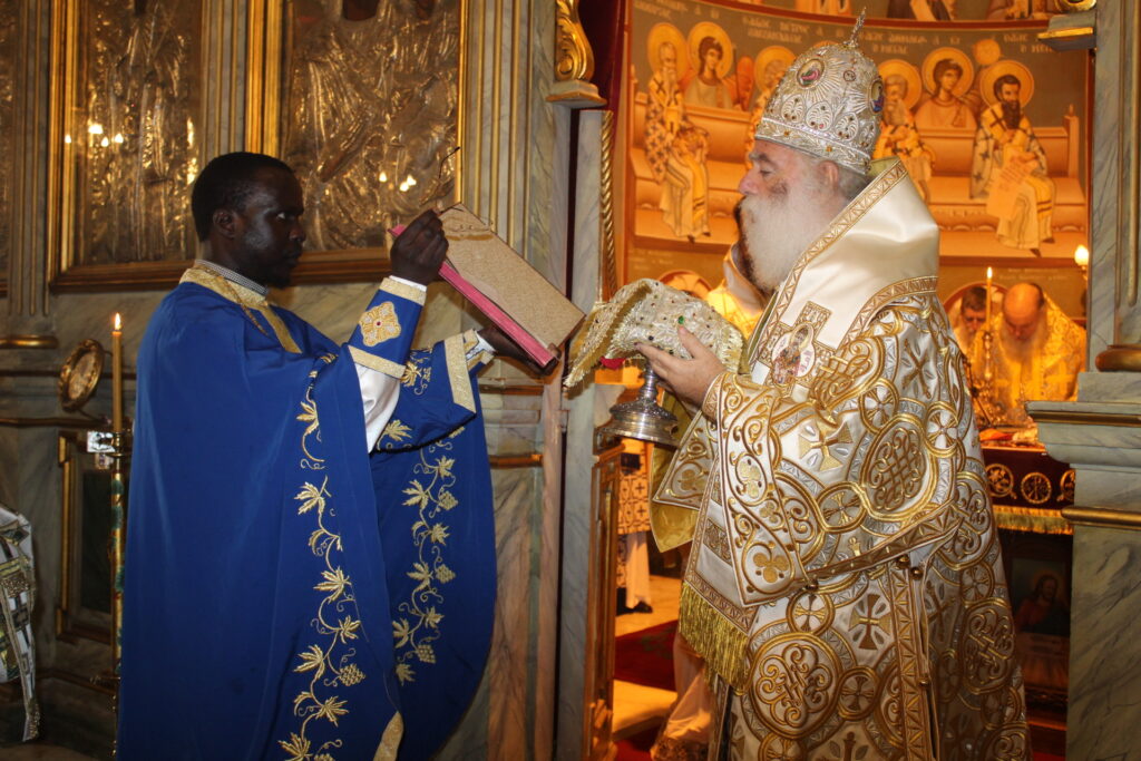 Μέσα ἀπὸ τὴ δική Σας λοιπὸν ἀγάπη Μακαριώτατε, σήμερα βλέπω καὶ τὸν δικό μου ταπεινὸ ἀγῶνα καὶ κατανοῶ τὸν ἐαυτὸ μου ὄχι ὡς «ἐν ἐσόπτρῳ» ἀλλὰ ὡς μέτοχο τῆς ἐλευθερίας ποὺ μοῦ χαρίστηκε ὅλα αὐτὰ τὰ χρόνια μέσα στὸν χῶρο τῆς Ἱεραποστολῆς, μέσα ἀπὸ τὶς δικές σας εὐχές. Ἀλλὰ αὐτὴ ἡ ἐλευθερία, ἀπαιτεῖ ὡς γνωστὸν θυσίες, ἔμπρακτες. Ἂν ἔχω λοιπόν γιὰ κάτι νὰ καυχηθῶ σήμερα, εἶναι γιὰ τὸ ὅτι μέσα ἀπὸ τὴ δική σας θυσιαστικὴ πολυετὴ πορεία στὸ σεπτό μας Πατριαρχεῖο, διδάχτηκα ὅτι ὁ Ἐπίσκοπος εἶναι, ὁ ἐν μέσῳ τῆς Ἐκκλησίας ἱστάμενος, εἰς τύπον τοῦ ἄχρι θανάτου θυσιασθέντος μεγάλου Ἀρχηγοῦ καὶ Τελειωτοῦ τῆς Πίστεώς μας καὶ τοῦ κάθε ἀγῶνα μας. Ἔτσι προσπάθησα τόσα χρόνια νὰ σταθῶ κοντὰ στοὺς Ἀφρικανούς μας ἀδελφούς. Ὄχι ὡς διδάσκαλος ἀλλὰ ὡς ἀδελφός. Ὄχι ὡς ἅγιος ἀλλὰ ὡς ἀγωνιζόμενος. Ὄχι ὡς «ἀλώβητος» ἀλλὰ ὡς πληγωμένος κι ἐγὼ ἄνθρωπος, δικός τους, ποὺ ἀγωνίζεται νὰ ὁδηγήσει, καθοδηγούμενος μέσα ἀπὸ τὸν δικό τους πόνο, πρὸς τὴν Χαρά τοῦ Χριστοῦ. Ἰδοὺ λοιπὸν ποὺ σήμερα αὐτὴ ἡ ἀγάπη τὴν ὁποία διδάχτηκα καὶ προσπάθησα ταπεινὰ νὰ ζήσω καὶ νὰ μεταδώσω, πολλαπλῶς, μοῦ ἀντιχαρίζεται.