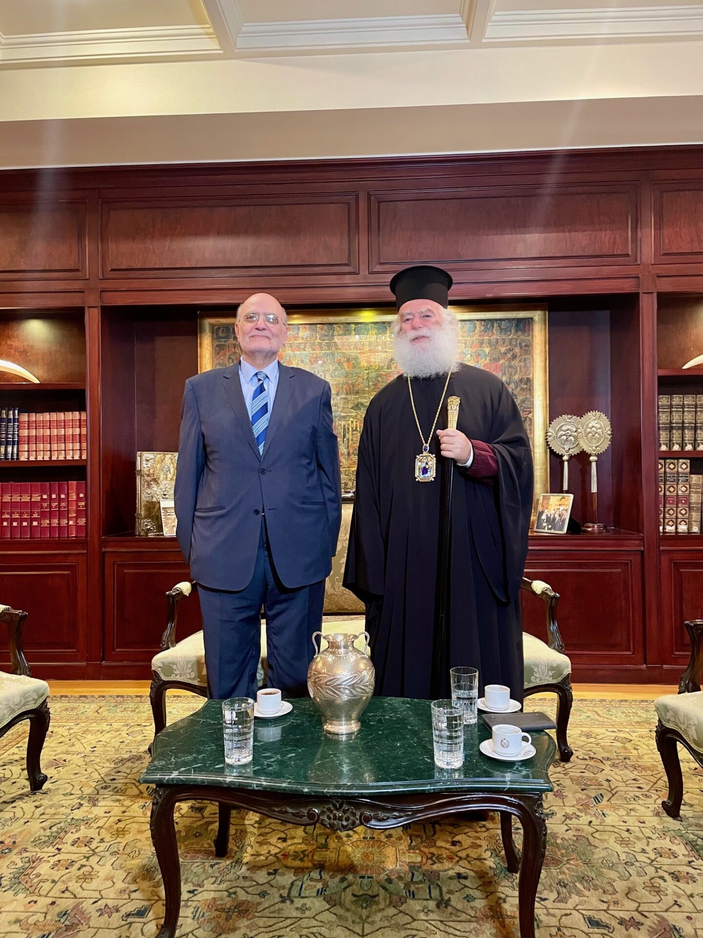 Η συνάντηση ολοκληρώθηκε με ανταλλαγή αναμνηστικών δώρων, ως και περιήγηση στους χώρους του Πατριαρχείου. Κατά την επίσκεψη παρέστησαν ο Σεβ. Μητροπολίτης Πτολεμαΐδος κ.Παντελεήμων, Αρχιγραμματεύς της Αγίας και Ιεράς Συνόδου του Πατριαρχείου και ο Σεβ. Μητροπολίτης Πηλουσίου κ. Νάρκισσος, Πατριαρχικός Επίτροπος Αλεξανδρείας.
