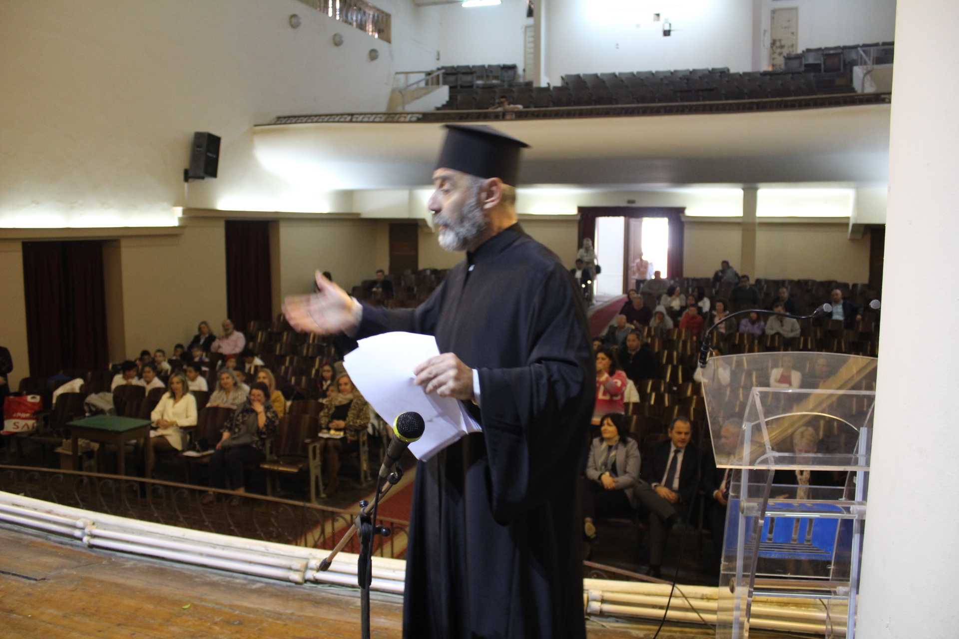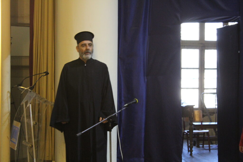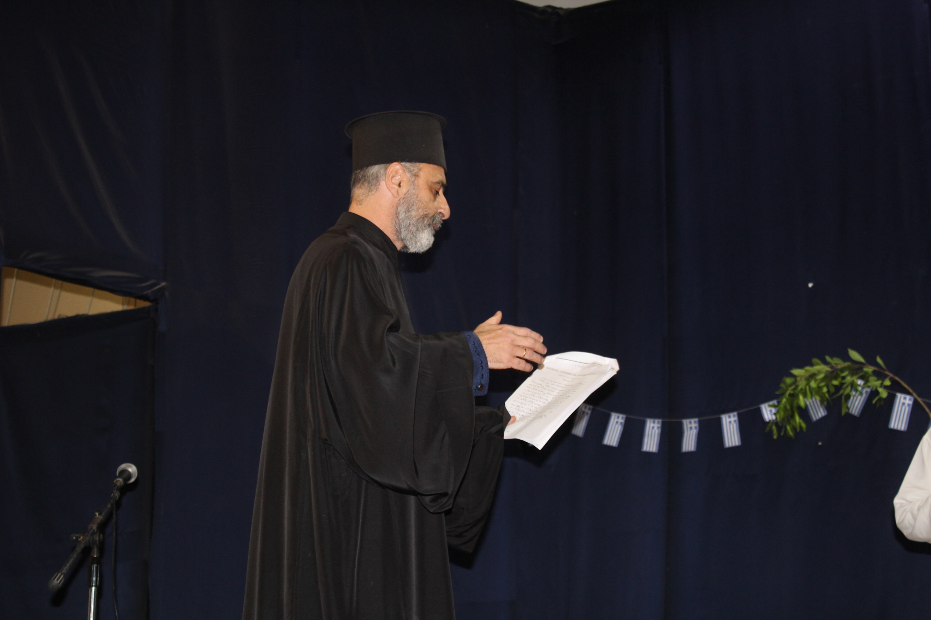 Ιδιαίτερη αναφορά οφείλουμε προς τον Αιδεσιμολογιώτατο Πρωτοπρεσβύτερο π. Πάνο Γαζή, με την διττή ιδιότητά του, καθώς εκπροσώπησε τον Πατριάρχη Αλεξανδρείας κ. Θεόδωρο Β΄, μεταφέροντας τις ευχές του και τον χαιρετισμό του, ενώ παράλληλα έπραξε το καθήκον του στη συνέχεια της εκδήλωσης και ως εκπαιδευτικός, καθοδηγώντας τη χορωδία των μαθητών του.
