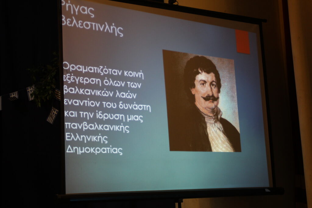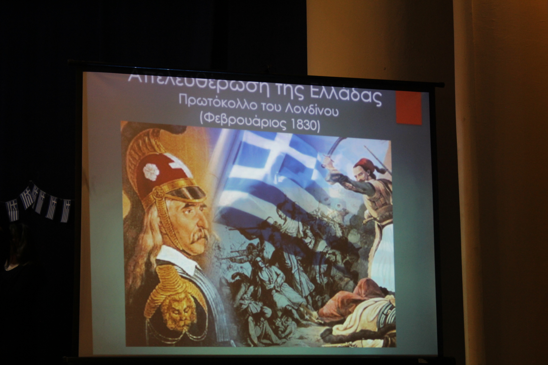Σημαντική και επιβοηθητική, στην παράλληλη κατανόηση του προφορικού λόγου, η προβολή εξαιρετικών εικόνων σε βίντεο που αποτύπωνε την Επανάσταση του 1821.