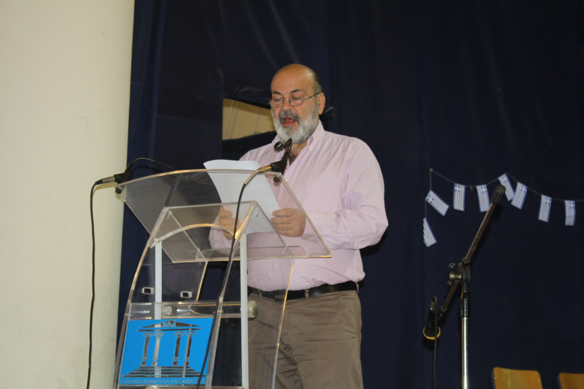 Προς τους προσκεκλημένους γονείς απευθύνθηκε επίσης και ο Διευθυντής του Τοσιτσαίου Πρατσίκειου Δημοτικού κ. Κων/νος Ρήγας, απευθύνοντας κι αυτός το δικό του χαιρετισμό.