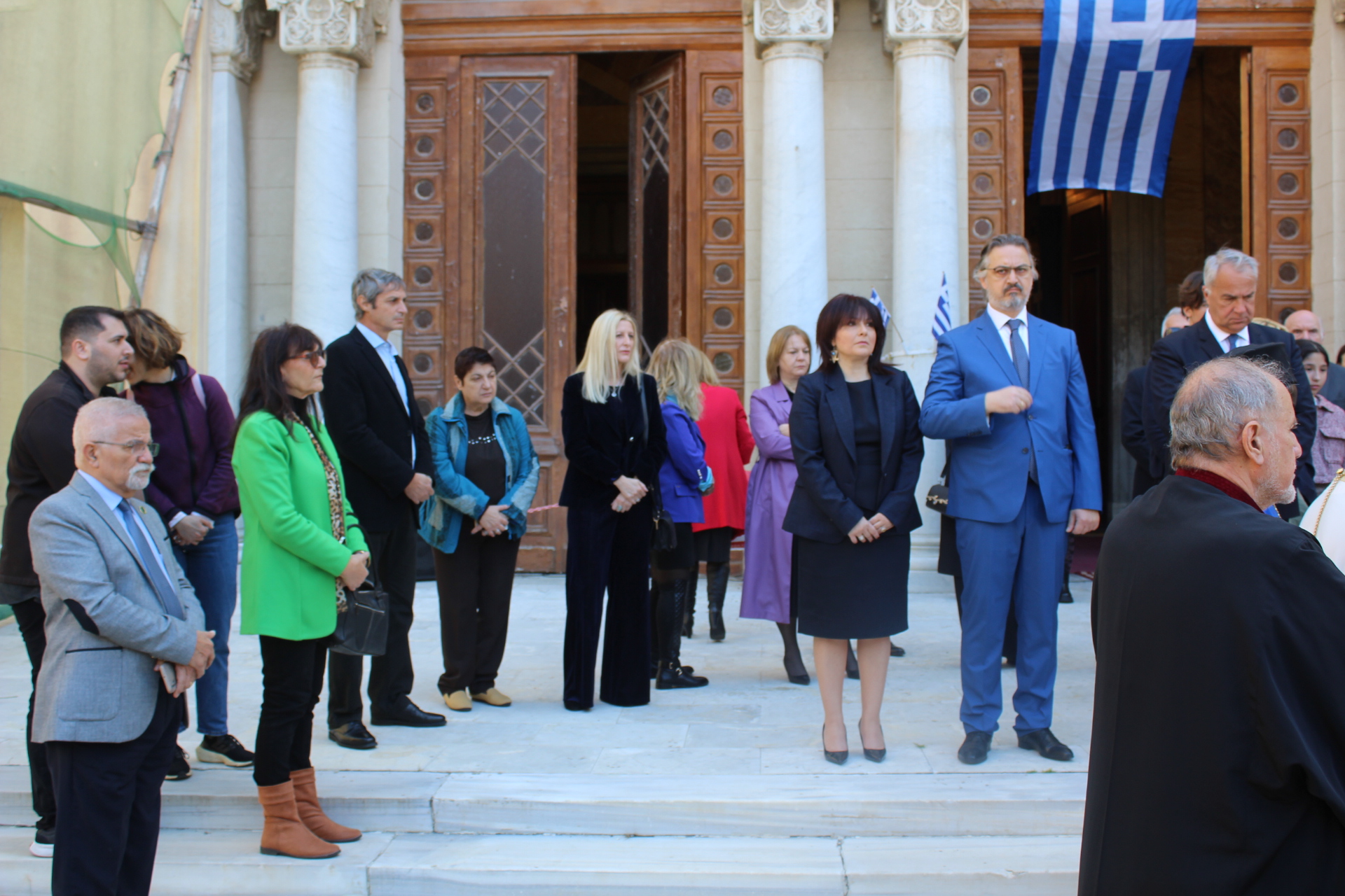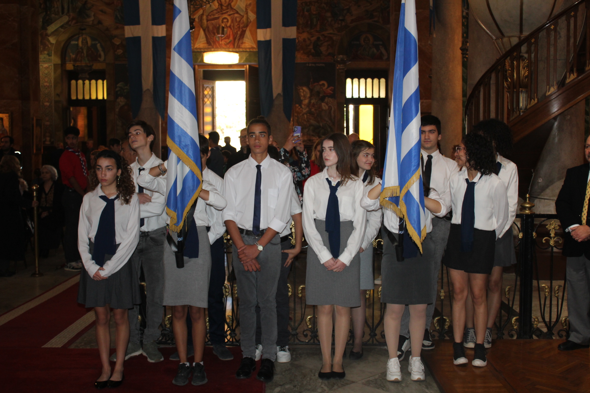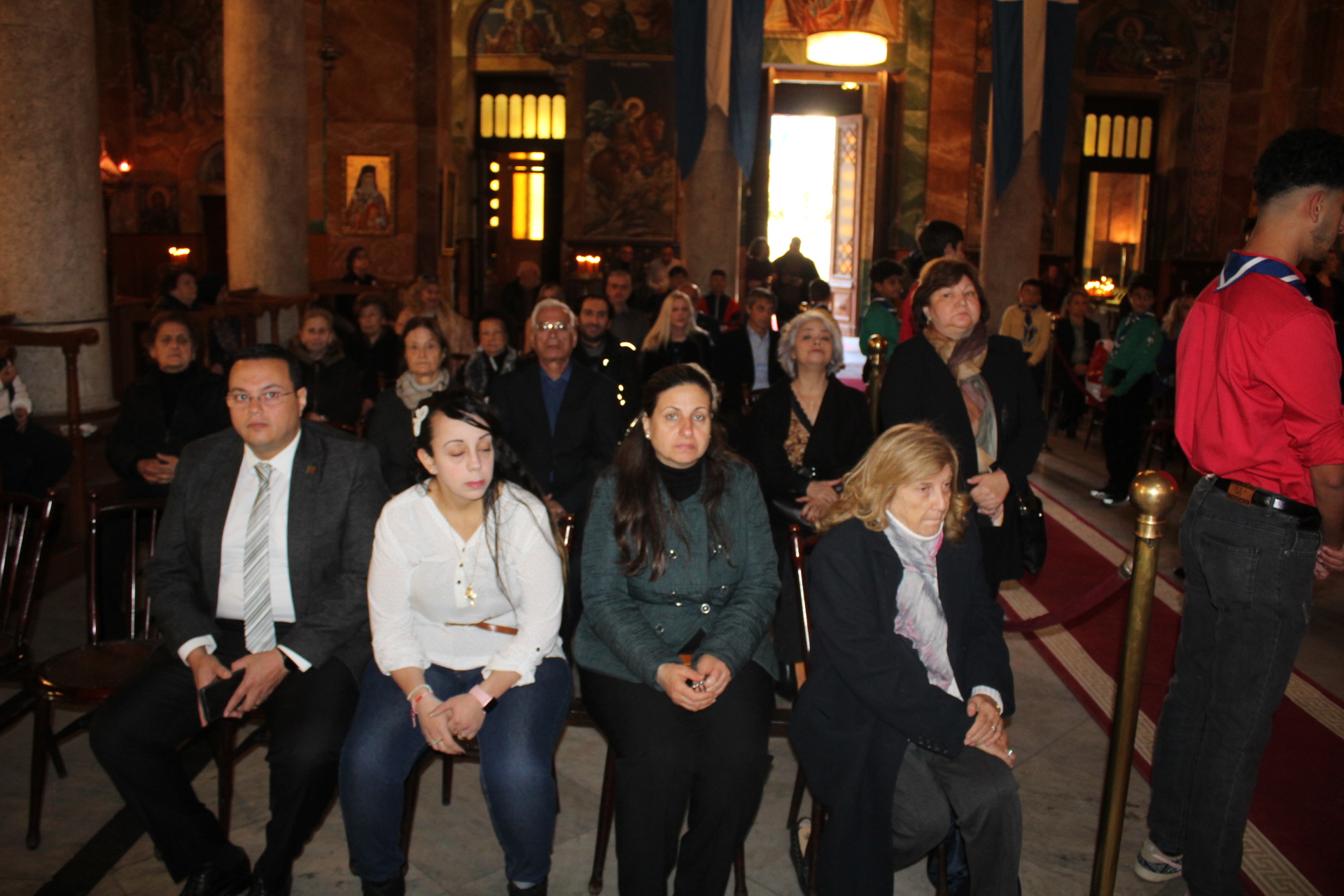 Παρευρέθησαν ο Γενικός Πρόξενος κ. Ιωάννης Πυργάκης μετά της συζύγου του Κατερίνας, ο Πρόεδρος της Ελληνικής Κοινότητας Αλεξανδρείας κ. Ανδρέας Βαφειάδης, ο Πλοίαρχος και Σύνδεσμος του Π/Ν κ. Κωνσταντίνος Βαρουξής μετά της συζύγου του, επίσης Πλοιάρχου, Αγγελικής, οι Κοινοτικοί: κ. Νικόλαος Κόπελος Αντιπρόεδρος, κ. Εμμανουήλ Τατάκης Οικονομικός Επόπτης, κ. Ευάγγελος Νεαμονίτης και κ. Βασίλειος Ζουές, αμφότεροι Κοινοτικοί Επίτροποι, η κα Λιλίκα Θλιβίτου, Πρόεδρος ΕΝΟΑ και του Πτολεμαίου Α΄, η Πρόεδρος του Λυκείου Ελληνίδων Αλεξανδρείας κα. Αλίκη Αντωνίου, η Διευθύντρια του Ιδρύματος Ελληνικού Πολιτισμού κα. Σταυρούλα Σπανούδη, οι Διευθυντές των Ελληνικών Σχολείων κα Αφροδίτη Πεβερέτου του Αβερώφειου, κ. Κωνσταντίνος Ρήγας του Δημοτικού, κα. Λένα Βοστάνη του Νηπιαγωγείου, η Γραμματέας της Κυπριακής Αδελφότητας κα. Μαρία Παυλίδου και άλλοι πολλοί, εκπαιδευτικοί, πάροικοι και επισκέπτες της αλεξανδρινής πόλεως.