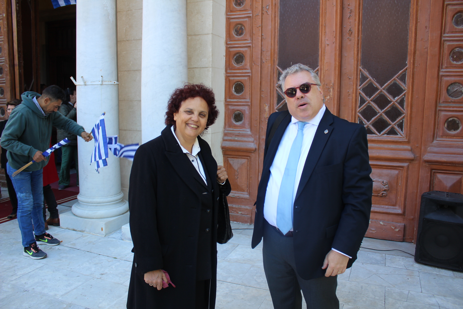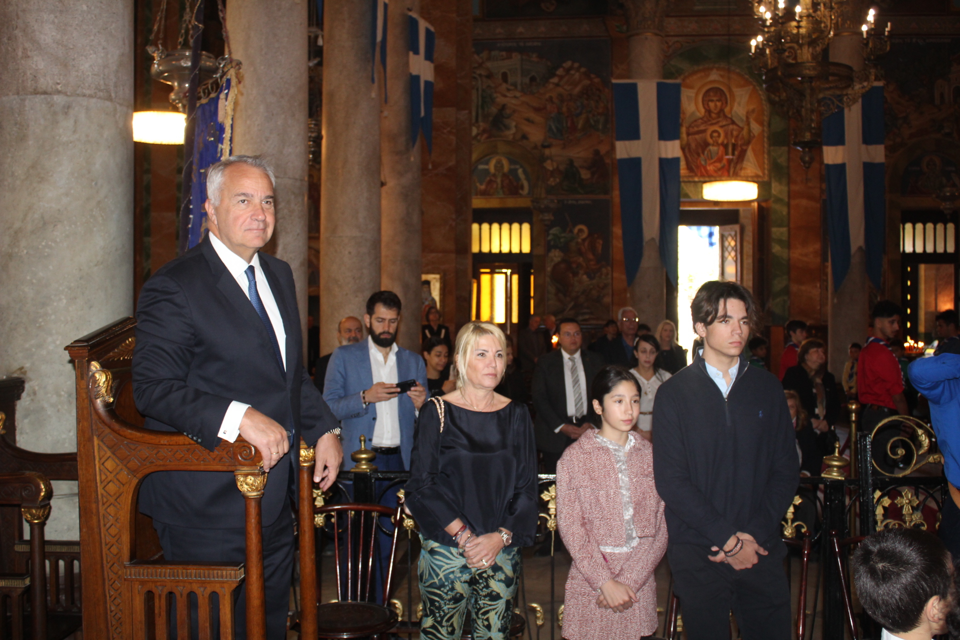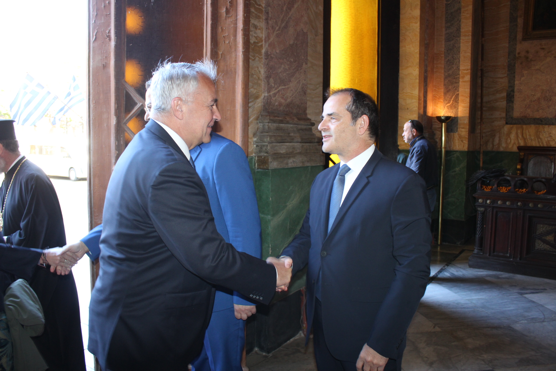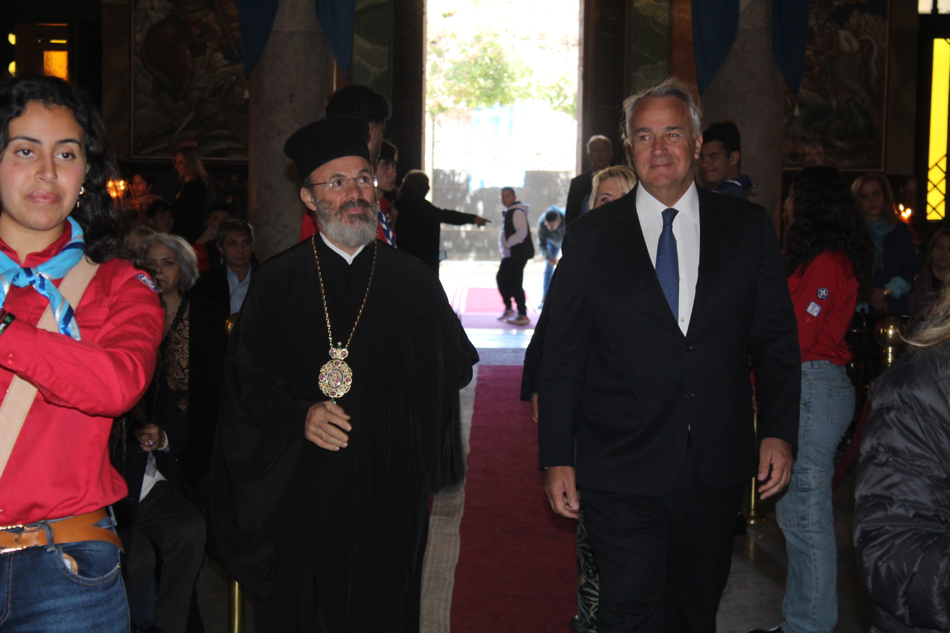 Υπήρξε όμως στον Καθεδρικό Ιερό Ναό του Ευαγγελισμού της Θεοτόκου, πριν της έναρξης του εκκλησιαστικού τελετουργικού, μια έκπληξη. Ήταν αυτή, της ανεπίσημης παρουσίας του Υπουργού Επικρατείας κ. Μάκη Βορίδη μετά της οικογενείας του, τον οποίον υπεδέχθησαν εις την είσοδο του Ναού ο Σεβασμιώτατος Μητροπολίτης Πηλουσίου κ. Νάρκισος Πατριαρχικός Επίτροπος, Ο Γενικός Πρόξενος της Ελλάδας στην Αλεξάνδρεια κ. Ιωάννης Πυργάκης και ο Πρόεδρος της Ε.Κ.Α. κ. Ανδρέας Βαφειάδης με Μέλη της Κοινοτικής Επιτροπής.