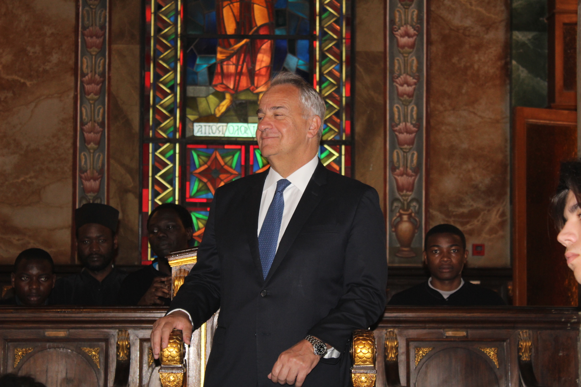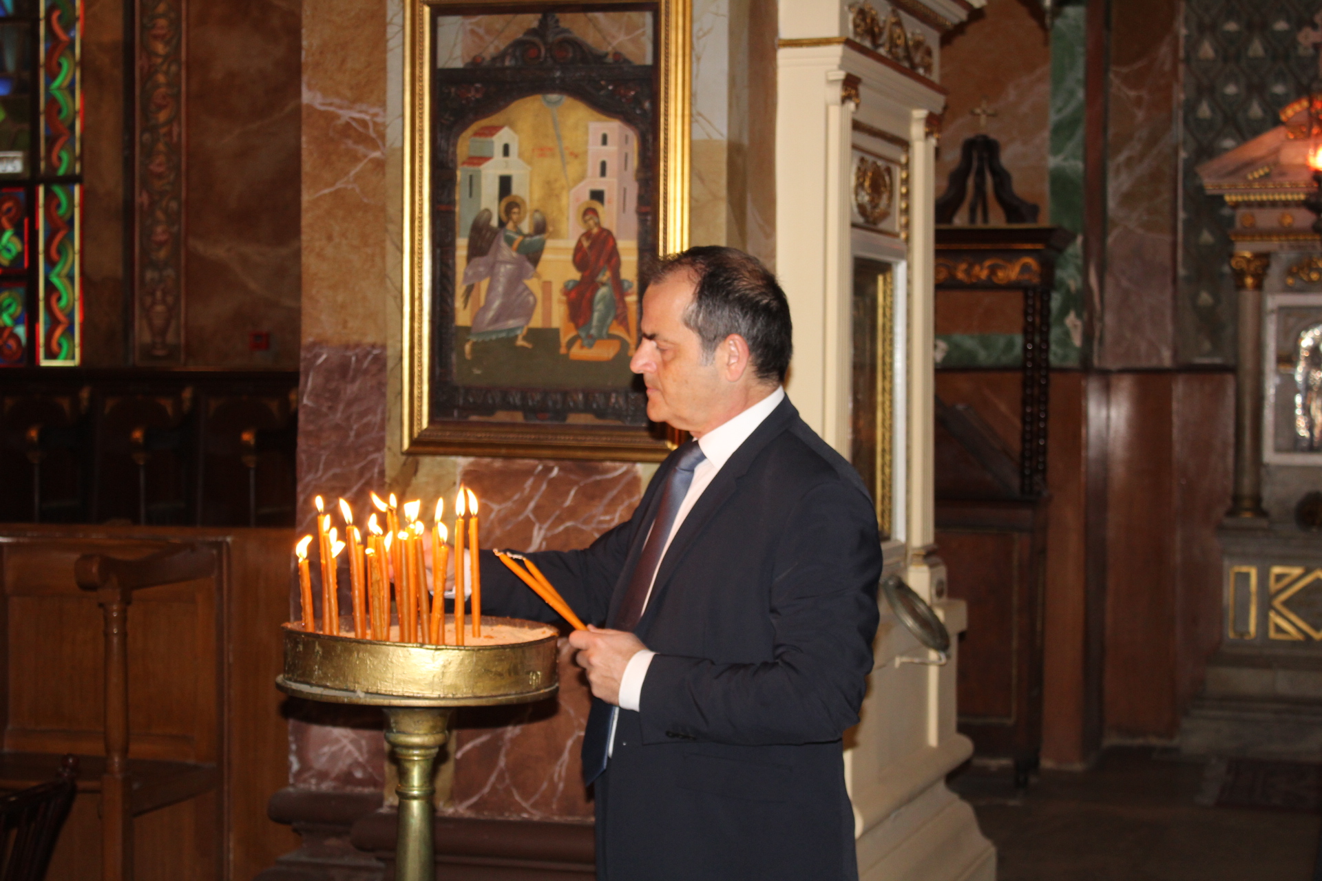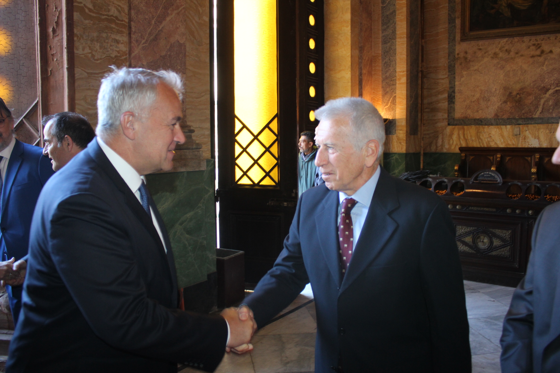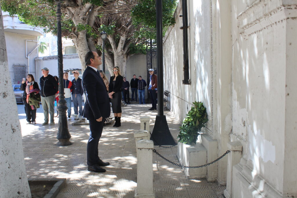 Υπήρξε όμως στον Καθεδρικό Ιερό Ναό του Ευαγγελισμού της Θεοτόκου, πριν της έναρξης του εκκλησιαστικού τελετουργικού, μια έκπληξη. Ήταν αυτή, της ανεπίσημης παρουσίας του Υπουργού Επικρατείας κ. Μάκη Βορίδη μετά της οικογενείας του, τον οποίον υπεδέχθησαν εις την είσοδο του Ναού ο Σεβασμιώτατος Μητροπολίτης Πηλουσίου κ. Νάρκισος Πατριαρχικός Επίτροπος, Ο Γενικός Πρόξενος της Ελλάδας στην Αλεξάνδρεια κ. Ιωάννης Πυργάκης και ο Πρόεδρος της Ε.Κ.Α. κ. Ανδρέας Βαφειάδης με Μέλη της Κοινοτικής Επιτροπής.