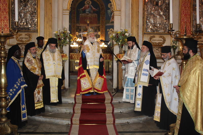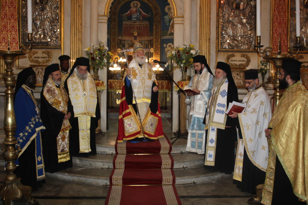 Στον Ιερό Ναό του Ευαγγελισμού, προεξάρχοντος του Μακαριωτάτου Πάπα και Πατριάρχου Αλεξανδρείας και πάσης Αφρικής Θεοδώρου Β΄, συμπροσευχήθηκαν οι Σεβασμιότατοι Μητροπολίτες: Πτολεμαΐδος κ. Παντελεήμων, Αρχιγραμματέας της Ιεράς Συνόδου, Πηλουσίου κ. Νάρκισσος Πατριαρχικός Επίτροπος Αλεξανδρείας, Ταμιάθεως κ. Γερμανός Προϊστάμενος της Ιεράς Μονής Οσίου Σάββα του Ηγιασμένου, Γέρων Λεοντοπόλεως κ. Γαβριήλ Πατριαρχικός Επίτροπος, μαζί με τον Αιδεσιμολογιώτατο Πρωτοπρεσβύτερο π. Πάνο Γαζή και τον Ιερέα Φέντι.