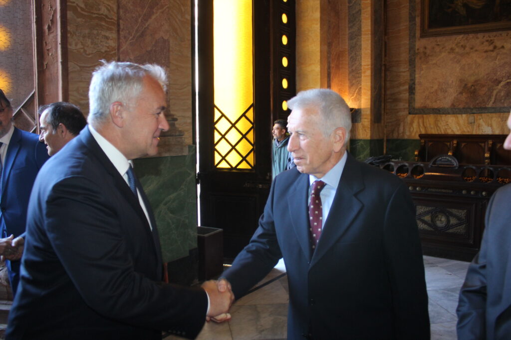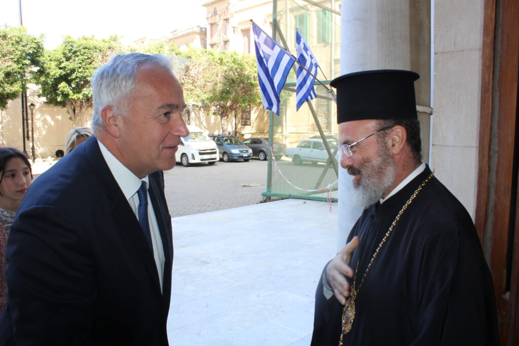 Επίσης αναφέρθηκε με αναπόληση στις ένδοξες εποχές που ο Ευαγγελισμός ήταν γεμάτος, αλλά τόνισε με ελπίδα και πίστη, ότι όσοι κι αν έχουμε μείνει εξακολουθούμε με θέρμη να στηρίζουμε την Χριστιανοσύνη και τον Ελληνισμό όχι μόνο στην Αίγυπτο, αλλά σε κάθε χώρα της πολύπαθης Αφρικής, ενώ ο Υπουργός κ. Βορίδης τον άκουγε με προσοχή και συγκατάνευση στα λόγια του Μακαριωτάτου.