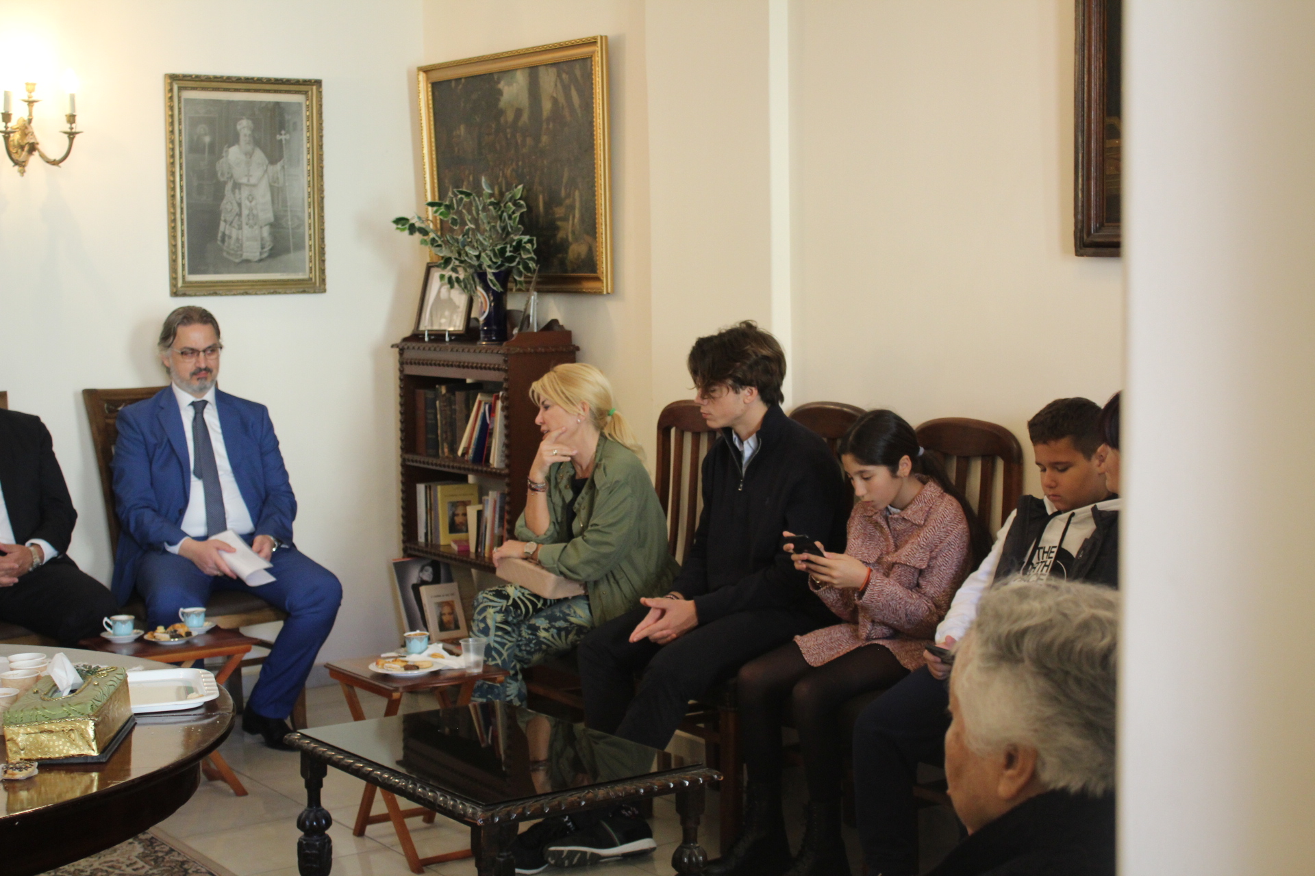 Μετά τις εθιμοτυπικές φωτογραφήσεις, με πρώτο τον μικρό Ανδρέα Γαζή, ο οποίος φωτογραφήθηκε με τον Υπουργό κ. Βορίδη, άπαντες κατευθύνθηκαν στο Αρχονταρίκι του Ιερού Ναού για να κεραστούν καφέ και γλυκίσματα, όπου εκεί μεταξύ ευχών και συζητήσεων, επικοινώνησαν και κατέγραψαν μια ακόμη επιτυχημένη Εθνική και Θρησκευτική Εορτή στην Παροικία των Αιγυπτιωτών Ελλήνων.