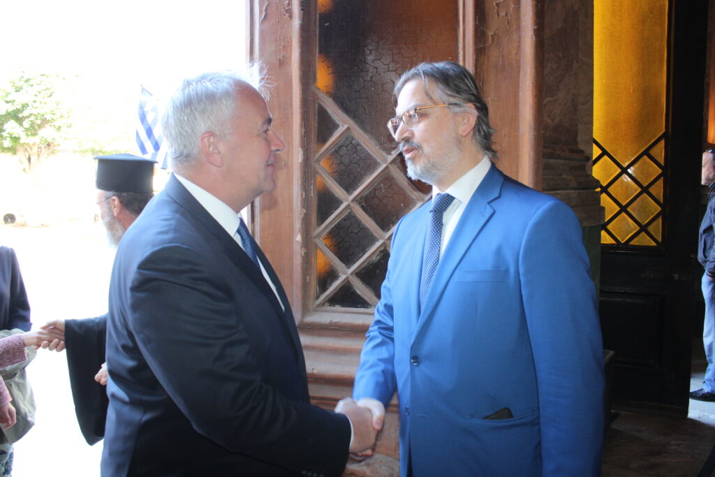 Στο τέλος της διπλής Εορτής των Ελλήνων, ο Μακαριώτατος εκ της Ωραίας Πύλης απευθύνθηκε προς τον Υπουργό με θερμά λόγια, τον ευχαρίστησε για την παρουσία του στον Ευαγγελισμό, που τιμά την Πόλη της Ορθοδοξίας, του Ελληνισμού και την ιστορική Παροικία των Αιγυπτιωτών Ελλήνων και του εξιστόρησε ένα περιστατικό από την Οδησσό, όταν ως Ιεράρχης εκεί, πρωτοείδε ένα μικρό σπιτάκι με την επιγραφή “Φιλική Εταιρεία” και τη συγκίνηση που αισθάνθηκε!