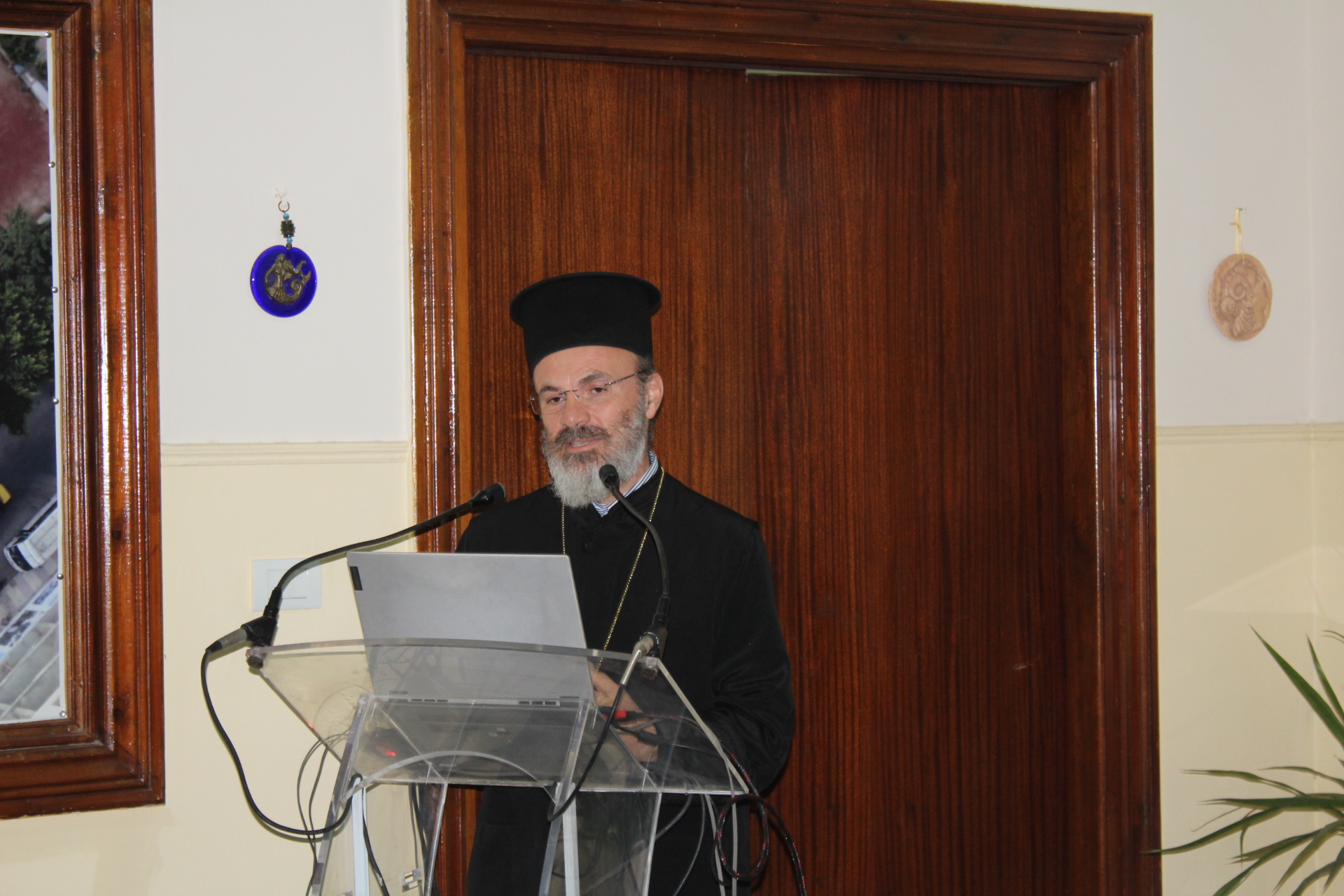 Ο συντονιστής Γρηγόρης Χαλιακόπουλος μετά την εισαγωγή του, προσκάλεσε στο βήμα τον Σεβασμιότατο Μητροπολίτη Πηλουσίου – Πατριαρχικό Επίτροπο κ. Νάρκισσο, ο οποίος εκτός των χαιρετισμών του Μακαριωτάτου που μετέφερε, εξέφρασε κι αυτός την χαρά του να πραγματοποιούνται τέτοιου είδους εκδηλώσεις, διότι το θέμα είναι ιδιαίτερα ενδιαφέρον και στηρίζει με την γνώση που παρέχει, τους ανυπεράσπιστους χρήστες που συναλλάσσονται, ενώ ευχήθηκε τα καλύτερα προς όλους, συγχαίροντας τους διοργανωτές.
