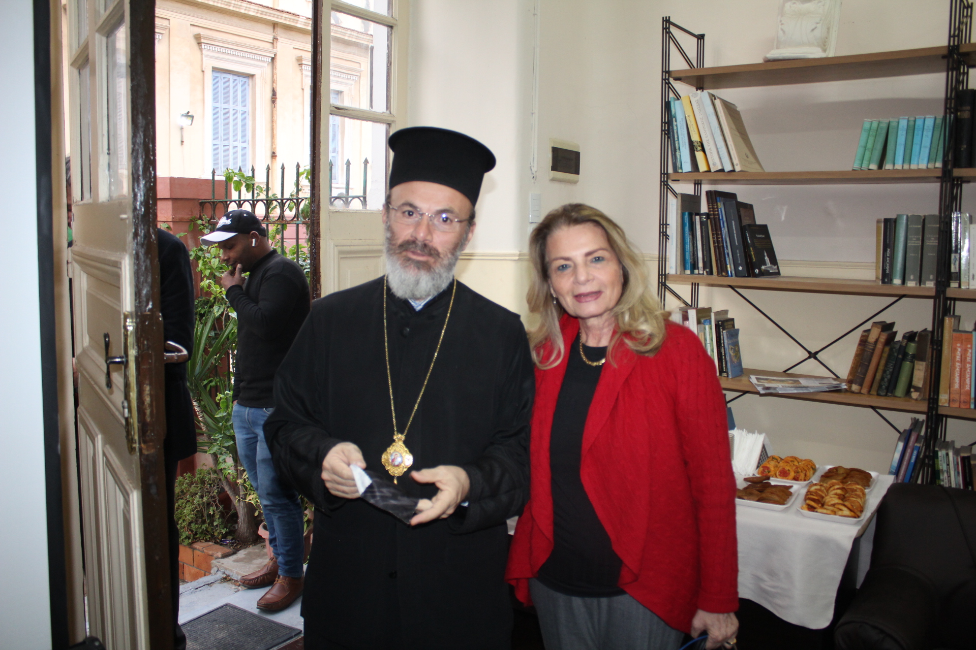 Από τους θεσμούς της Αλεξανδρινής πόλεως, παρέστη η Πρόεδρος του Ελληνικού Ναυτικού Ομίλου και του Πτολεμαίου Α΄ κα Λιλίκα Θλιβίτου και η Διευθύντρια του Ιδρύματος Ελληνικού Πολιτισμού Αλεξανδρείας κα. Σταυρούλα Σπανούδη.