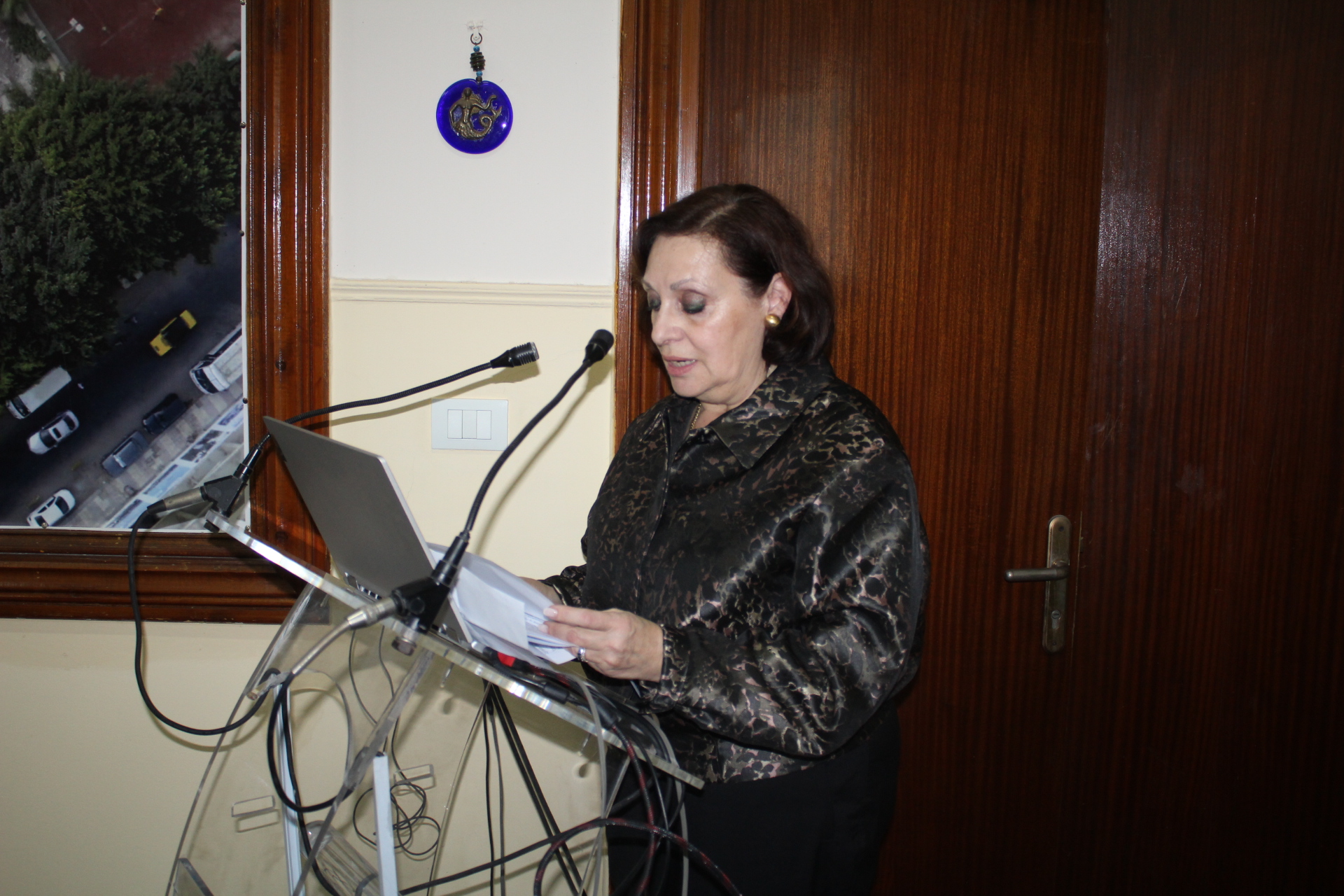 Προσεκλήθη στο βήμα η κα. Παπακώστα, η οποία προλόγισε τους δύο ομιλητές. Ανεφέρθη εκτενώς στα βιογραφικά τους πεπραγμένα και τοποθετήθηκε με ευκρινή και εύληπτο τρόπο στο σημαντικό θέμα που αφορά τη διεθνή κοινότητα και σχετίζεται με τις διαδικτυακές απάτες.