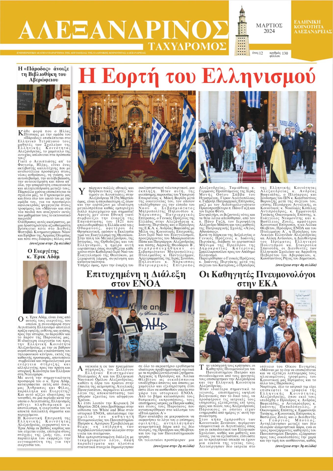Όπως σας ενημερώσαμε με προηγούμενη ανάρτηση, η εφημερίδα “ΑΛΕΞΑΝΔΡΙΝΟΣ ΤΑΧΥΔΡΟΜΟΣ” της Ελληνικής Κοινότητας Αλεξανδρείας, από τον Ιανουάριο του 2024 κυκλοφορεί ανά μήνα αντί τριμήνου που κυκλοφορούσε από τον Μάρτιο του 2022.