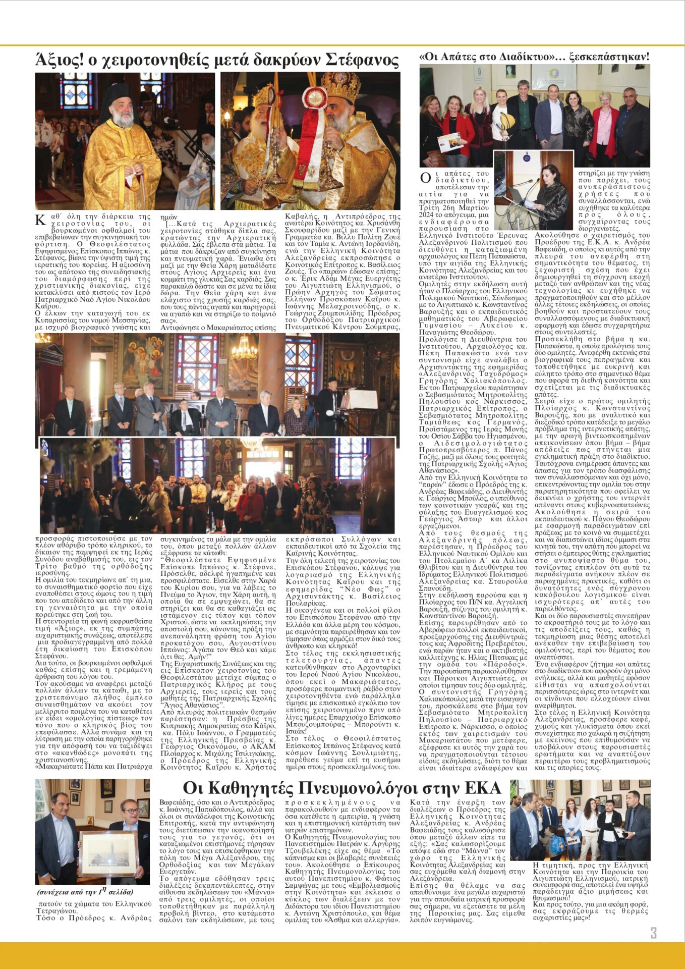Και βέβαια, η ιστοσελίδα μας, συνεχίζει σε καθημερινή βάση να καταγράφει όλα τα κοινωνικά, και ενδιαφέροντα ειδησεογραφικά θέματα που αφορούν στην Παροικία μας και στις σχέσεις των χωρών μας, Αιγύπτου, Ελλάδας και Κύπρου.