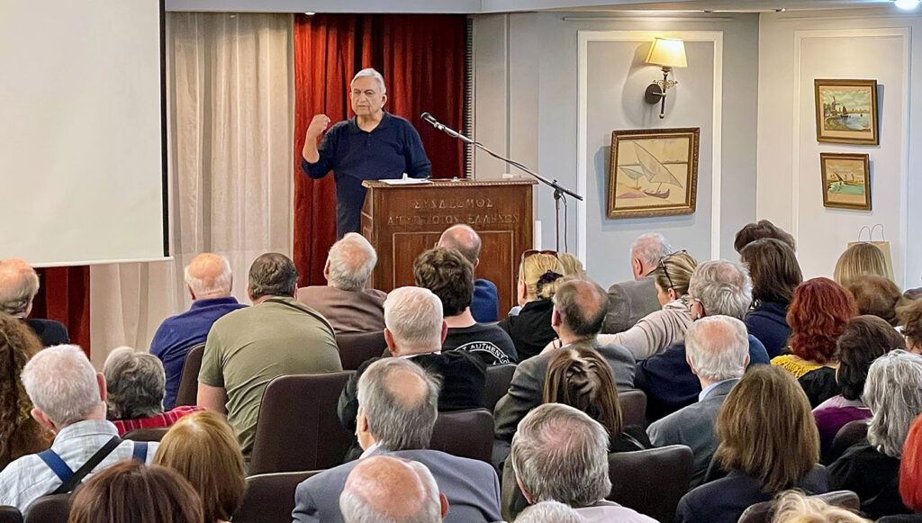 Σε μια αίθουσα κατάμεστη από κόσμο εκλεκτό του χώρου της Πολιτικής, της Παιδείας, της Δημοσιογραφίας και της Λογοτεχνίας, συμμαθητών του ομιλητή, στο εντευκτήριο μας, δόθηκε τη Δευτέρα 1η Απριλίου 2024, από τον Γιάννη Κοσσένα η πολύ ενδιαφέρουσα αυτοαναφορική διάλεξη με θέμα «Το βιβλίο που δεν έγραψα».