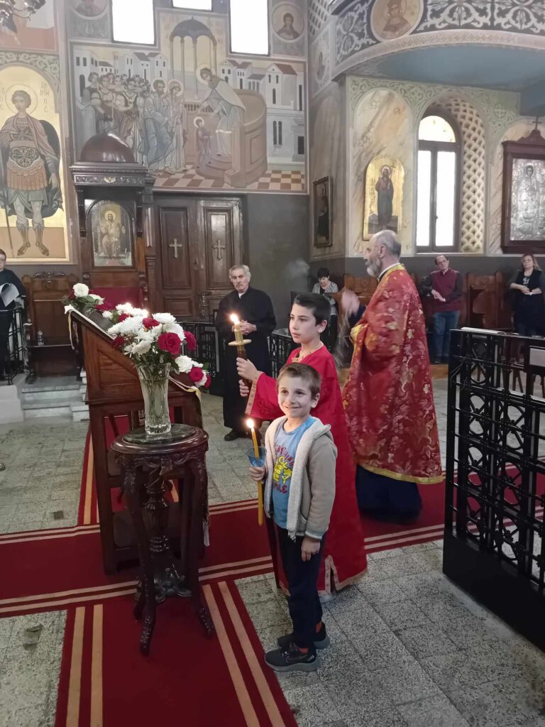 Επίσης, ευχαρίστησε και την κα Κωνσταντίνα Τερζή για την πολύτιμη βοήθειά της στο ψαλτήρι όλα αυτά τα χρόνια.  Στη συνέχεια όλοι κατευθύνθηκαν στο αρχονταρίκι του Ιερού Ναού και απόλαυσαν νηστίσιμα γλυκίσματα και καφέ.