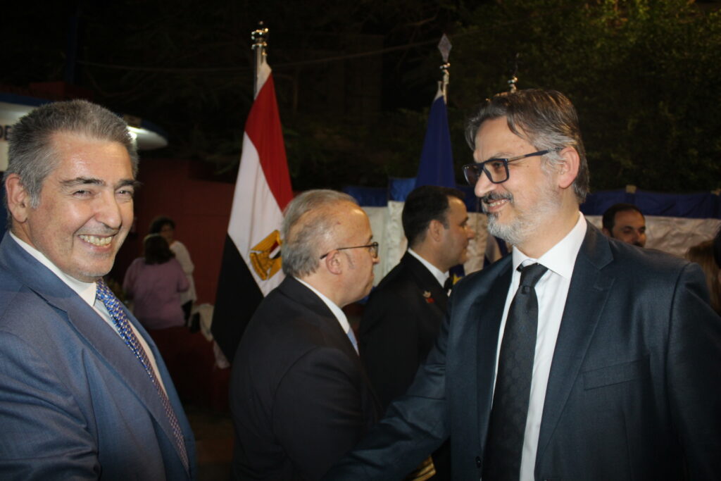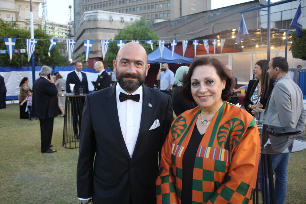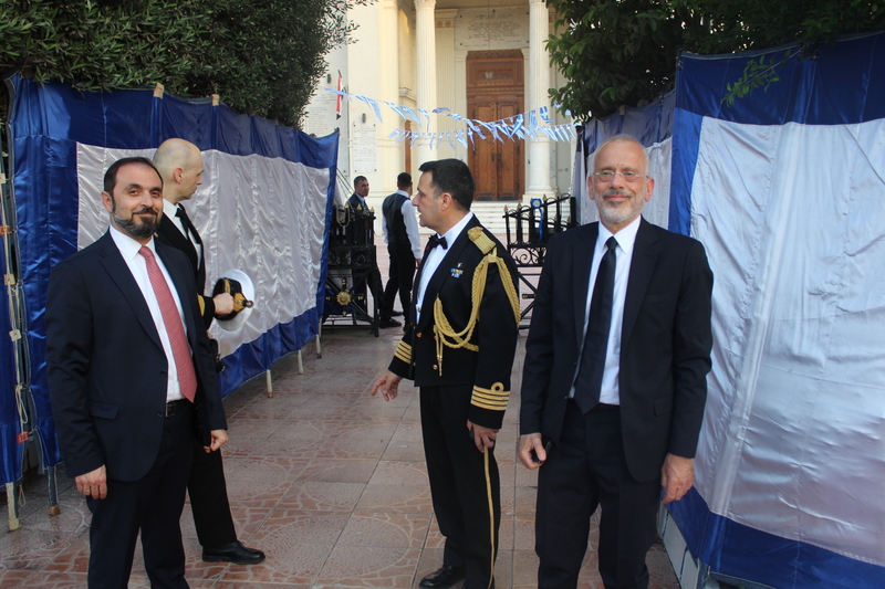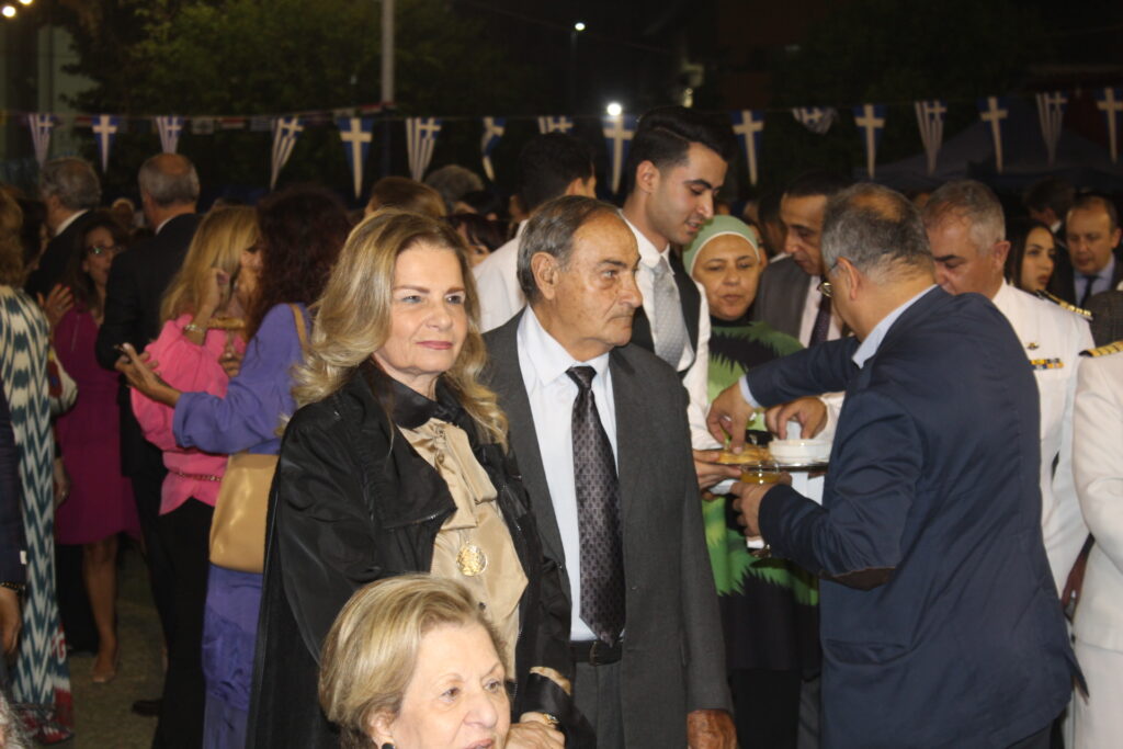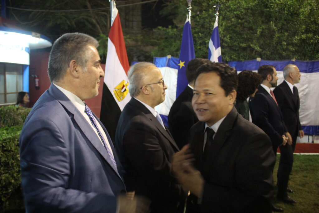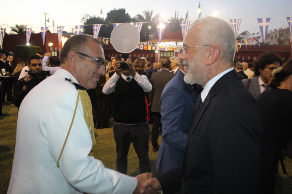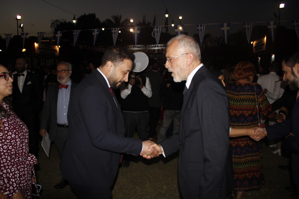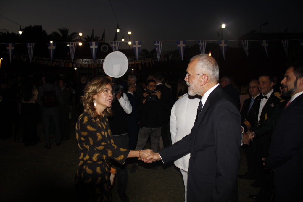 Ο Πρέσβυς κ. Νικόλαος Παπαγεωργίου με τους υψηλόβαθμους της Πρεσβείας, υποδεχόταν τους προσκεκλημένους του, σύμφωνα με το πρωτόκολλο αλλά και την ζεστή σχέση που έχει συνάψει με τους παράγοντες της πολιτειακής ζωής της Αιγύπτου, τους ομολόγους του των άλλων κρατών, καθώς και τους θεσμικούς εκπροσώπους του πολιτικού κι επιχειρηματικού κόσμου.