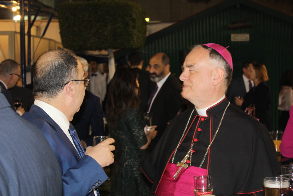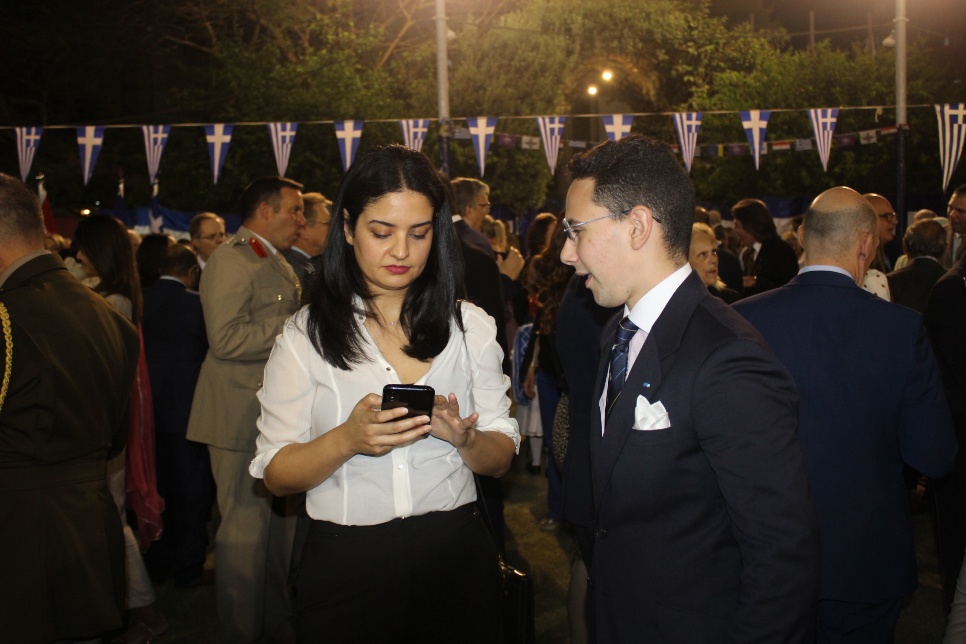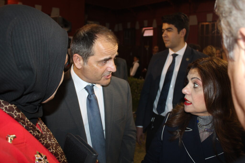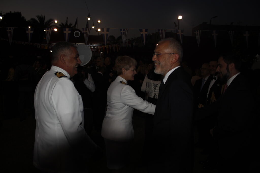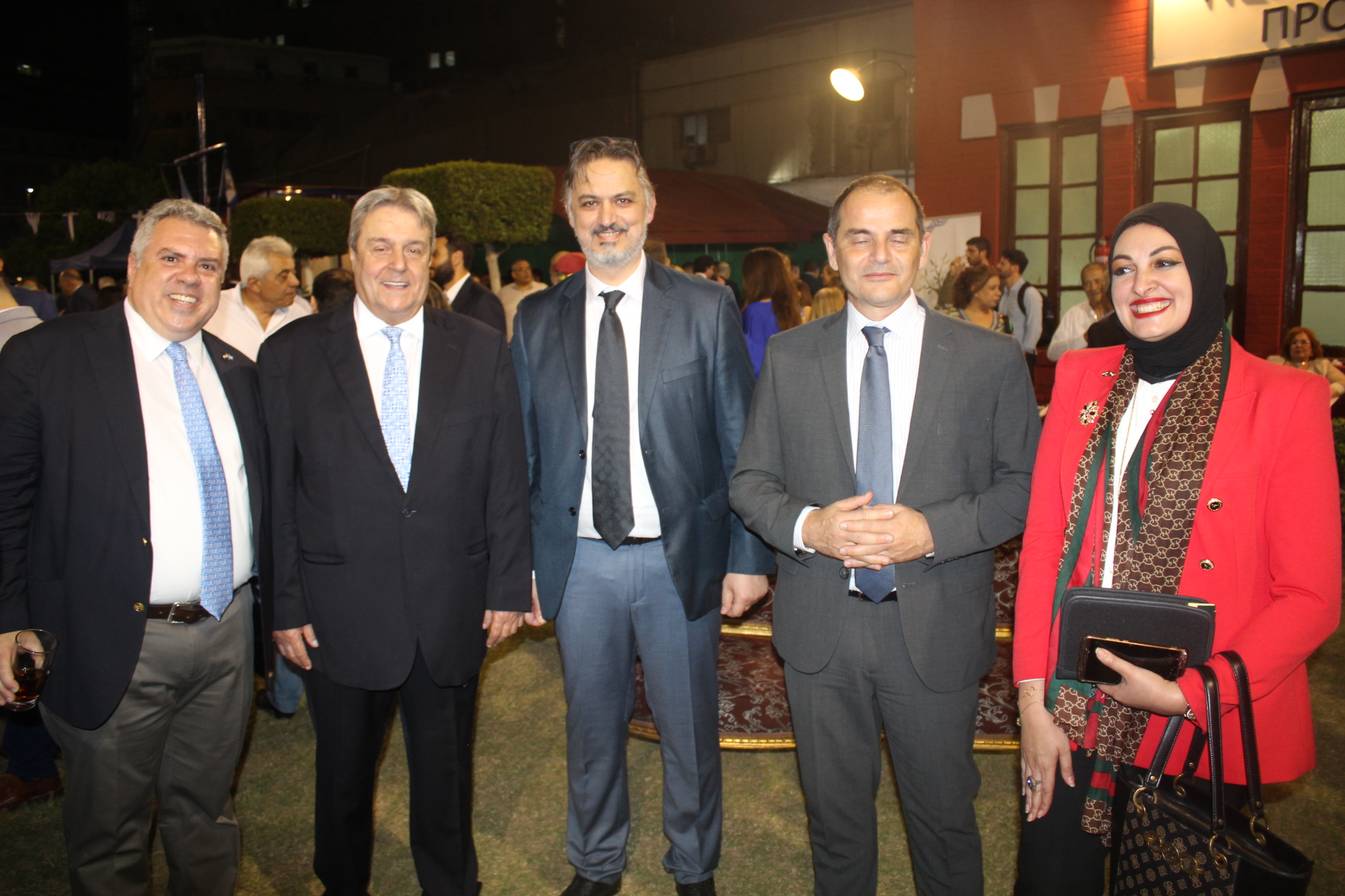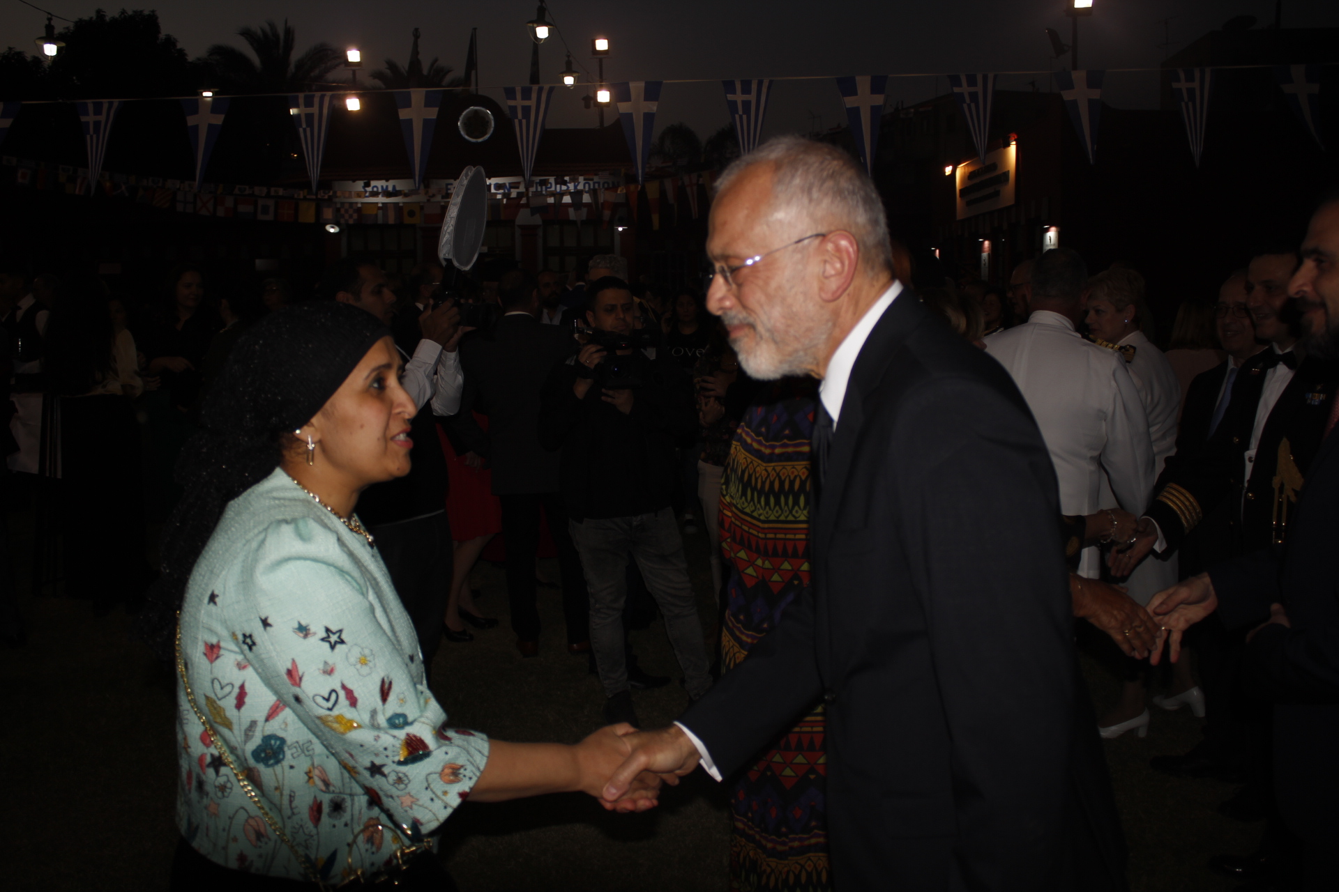 Ο Πρέσβυς κ. Νικόλαος Παπαγεωργίου με τους υψηλόβαθμους της Πρεσβείας, υποδεχόταν τους προσκεκλημένους του, σύμφωνα με το πρωτόκολλο αλλά και την ζεστή σχέση που έχει συνάψει με τους παράγοντες της πολιτειακής ζωής της Αιγύπτου, τους ομολόγους του των άλλων κρατών, καθώς και τους θεσμικούς εκπροσώπους του πολιτικού κι επιχειρηματικού κόσμου.