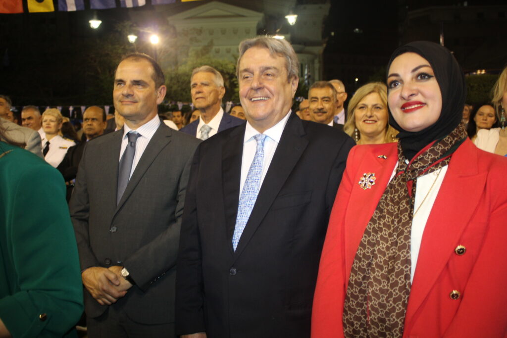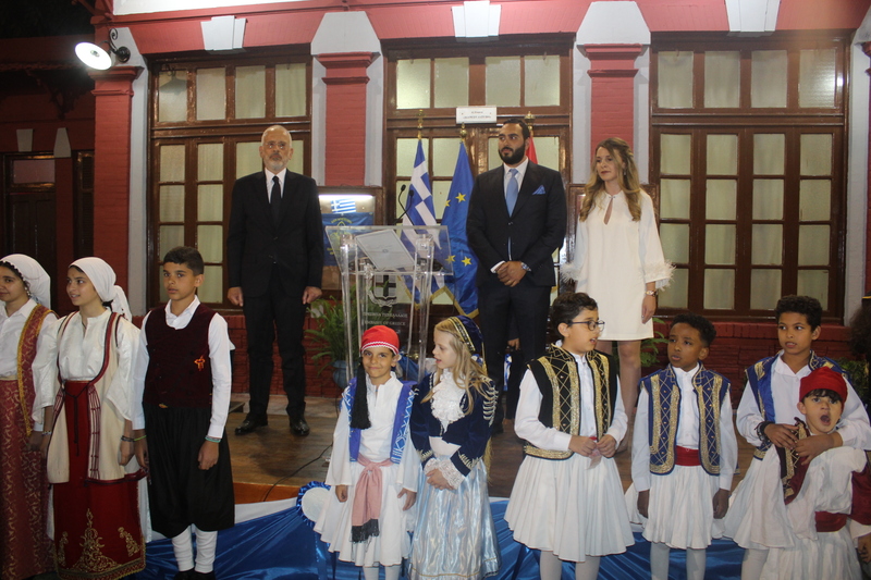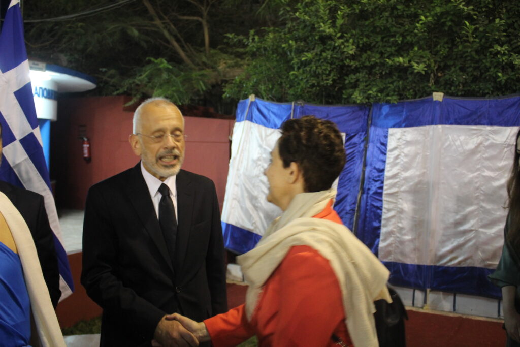 Ακολούθως ο Πρέσβυς και οικοδεσπότης κ. Νικόλαος Παπαγεωργίου απευθύνθηκε στην πολυάριθμη συγκέντρωση των επίσημων προσκεκλημένων του, τονίζοντας μεταξύ πολλών άλλων, την αξία, το νόημα και το αποτέλεσμα που είχε η Ελληνική Επανάσταση της 25ης Μαρτίου 1821, μέσω της οποίας οι Έλληνες επανεδραιώθηκαν στην γη των προγόνων τους, ελεύθεροι μετά από θυσίες και δύσκολους αγώνες. Σε μια αποστροφή της ομιλίας του, εξέφρασε την ευγνωμοσύνη της Ελλάδας προς όλους τους φιλέλληνες που στάθηκαν στο πλευρό των αγωνιζόμενων Ελλήνων, ενώ δεν παρέλειψε να προβάλει τον σημαντικό ρόλο της σύγχρονης Ελλάδας ως πυλώνος σταθερότητας στην ευρύτερη περιοχή και την επιδίωξή της για αμοιβαία συνεννόηση και ειρήνη με όλα τα κράτη.