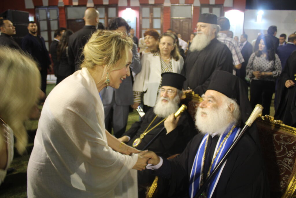 Παρέστησαν επίσης: η Μεγάλη Ευεργέτιδα της Ε.Κ.Κ και Αρχόντισσα του Πατριαρχείου Αλεξανδρείας κα Αικατερίνη Μπελεφάντη Σοφιανού και ο Μεγάλος Ευεργέτης της Ελληνικής Κοινότητας Αλεξανδρείας και Καΐρου επιχειρηματίας κ. Έρικ Αδάμ.