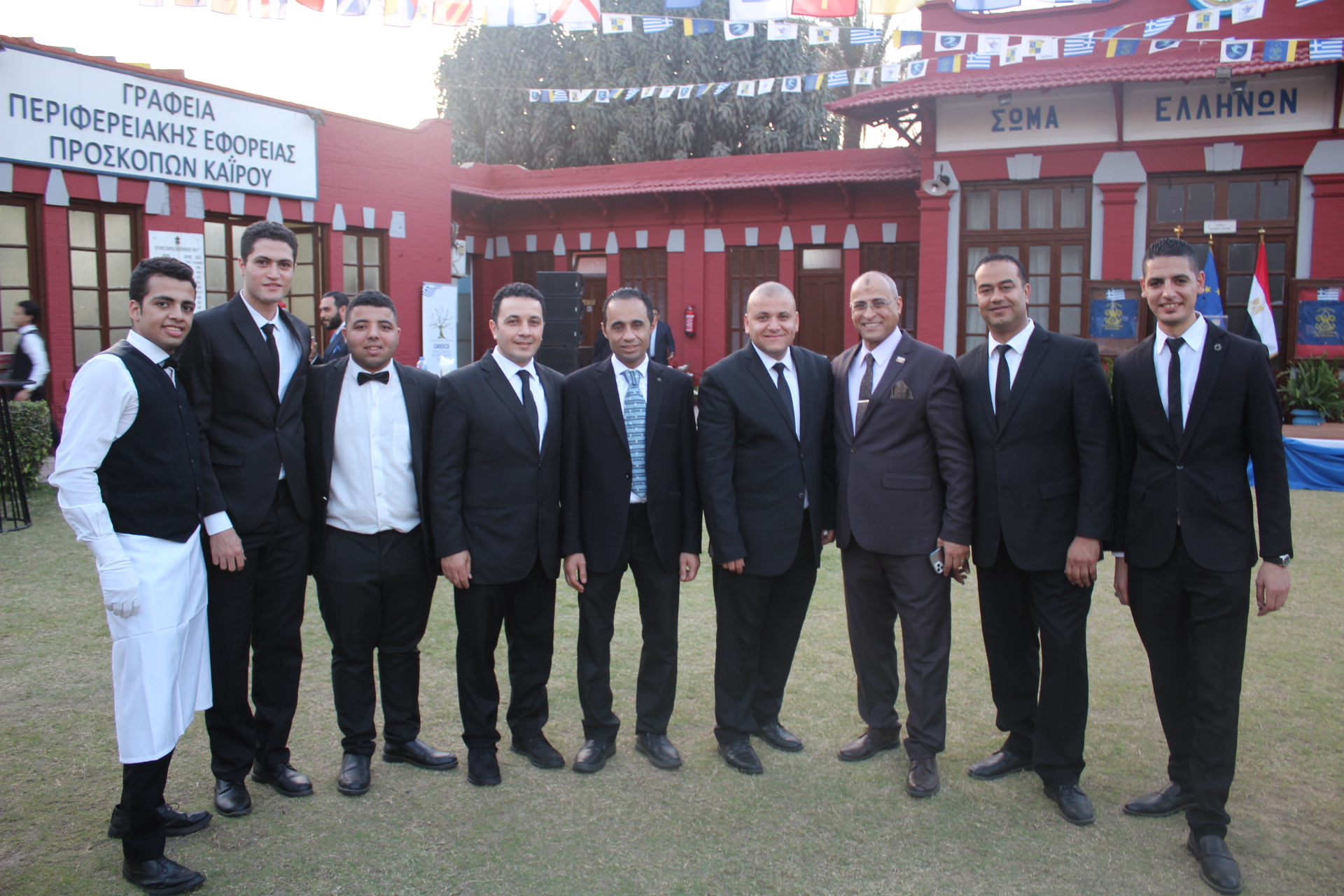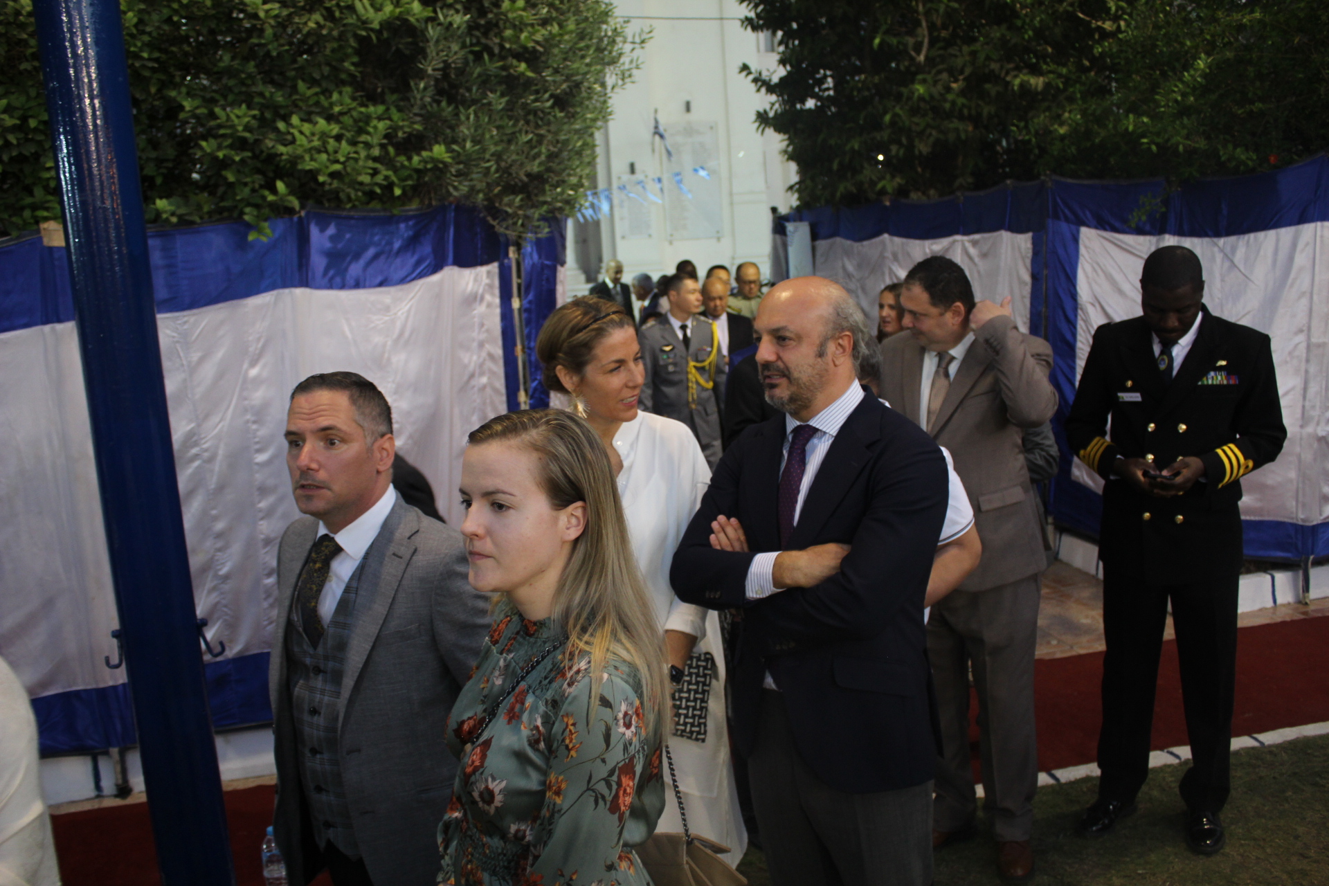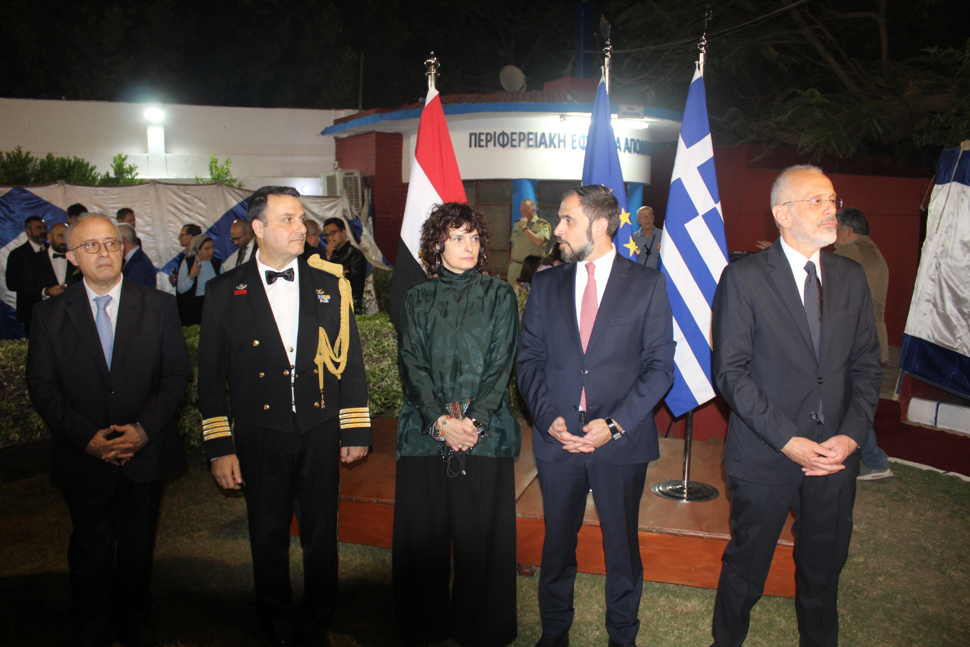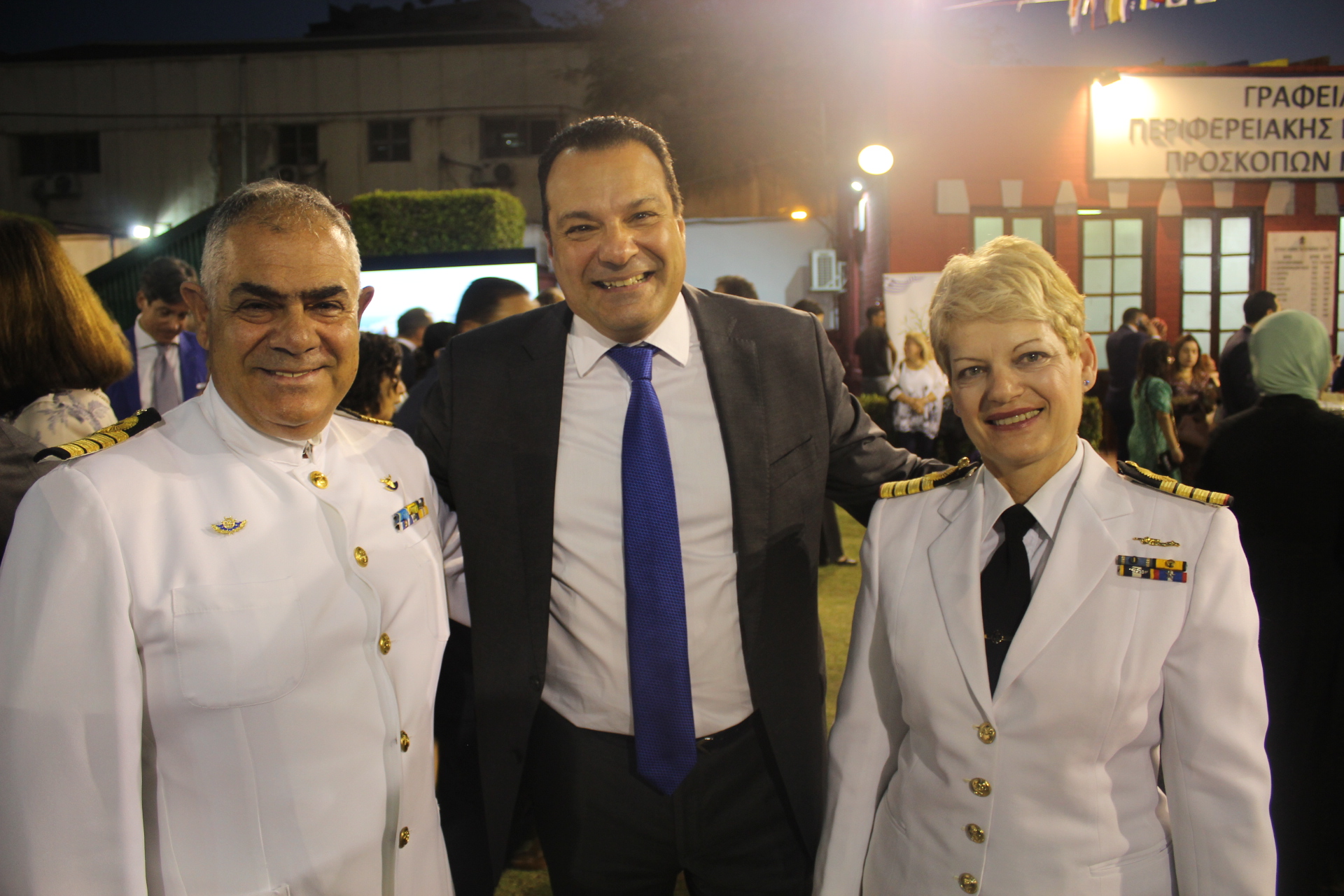 Στην υποδοχή των καλεσμένων στο πλευρό του Έλληνα Πρέσβη ήταν ο Σύμβουλος Πρεσβείας κ. Αθανάσιος Λεούσης, ο ΑΚ.ΑΜ της Ελλάδος στην Αίγυπτο Πλοίαρχος Μιχάλης Τσιλιγκάκης, η Γενική Πρόξενος της Ελλάδας στο Κάιρο κα Δέσποινα Χασιρτζόγλου, ο Εμπορικός Ακόλουθος κ. Περικλής Δαβανέλος και ο υπεύθυνος του Γραφείου Τύπου κ. Ηλίας Γαλάνης.