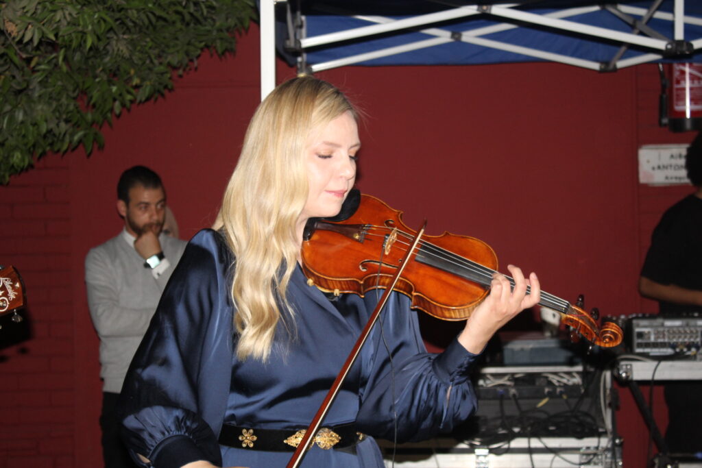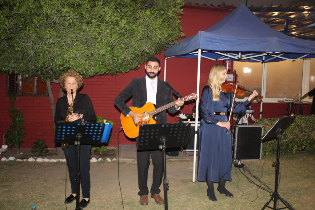 Καθ΄ όλη την διάρκεια της εκδήλωσης οι κυρίες: Μπιόργκ Οσκαρσντότιρ στο βιολί, Δώρα Μάστακα στο σαξόφωνο και ο κ. Amr Yasser στην κιθάρα, προσέδωσαν τον τόνο που απαιτούσε η βραδιά με νοσταλγικές μελωδίες από διεθνείς επιτυχίες!