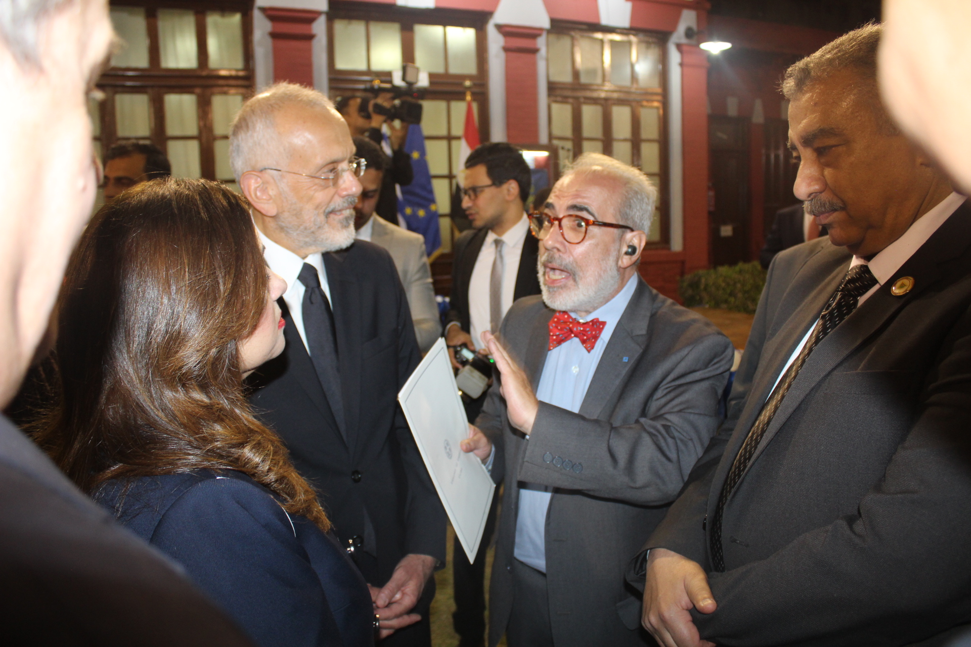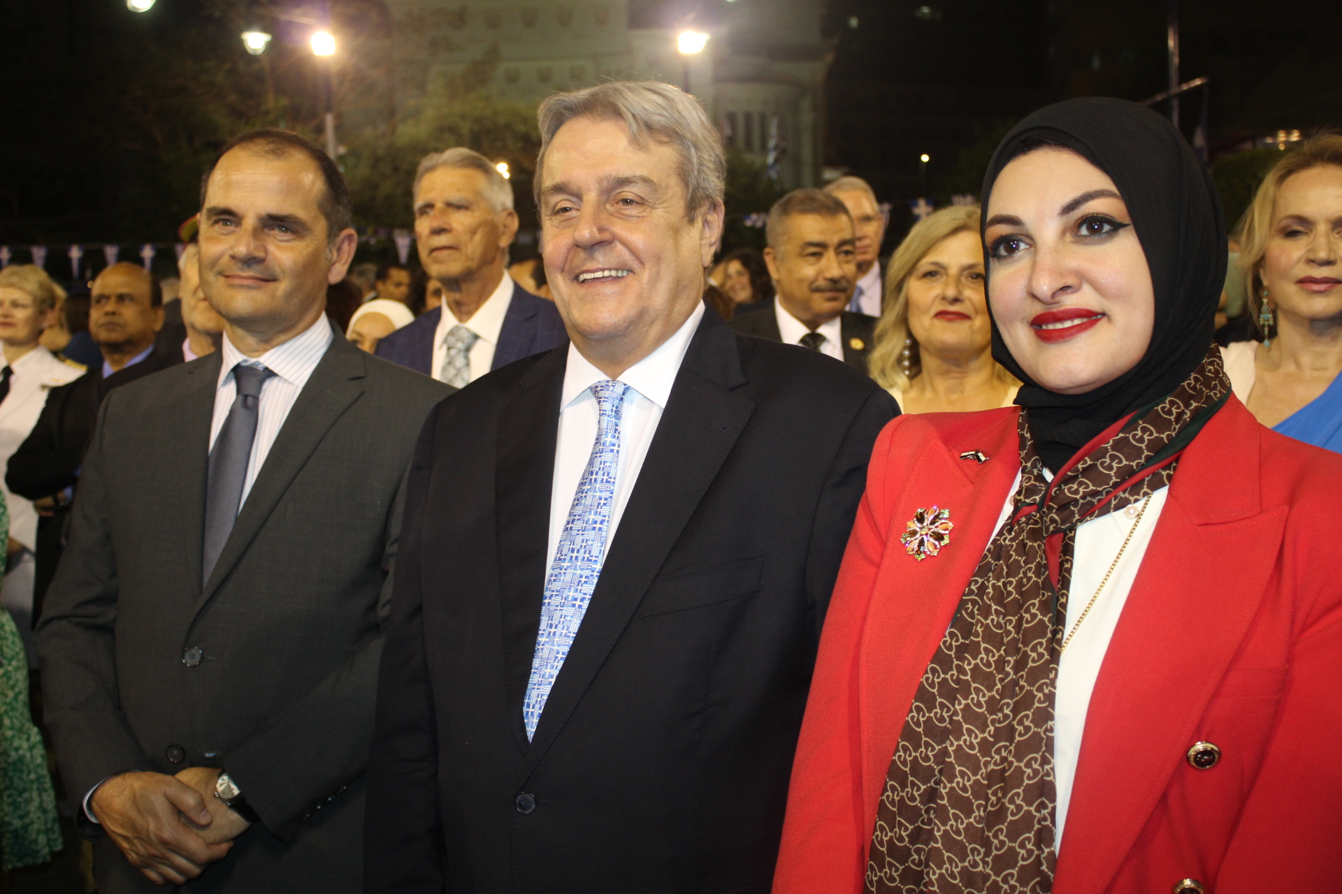 Το επίσημο κράτος της Αιγύπτου, εκπροσωπήθηκε από την Υπουργό Μετανάστευσης και Διασποράς κα Σόχα Ελ Γκέντι, τον Υπουργό Εφοδιασμού κ. Άλι Μεσέλι, ενώ την δεξίωση τίμησαν επισήμως και ο Πρεσβευτής της Ευρωπαϊκής Ένωσης κ. Κρίστιαν Μπέργκερ, ο Εμπορικός Ακόλουθος της Ε.Ε. κ. Νικόλαος Ζαΐμης, ο πρ. Υπουργός Εξωτερικών και πρ. Γενικός Γραμματέας του Αραβικού Συνδέσμου κ. Άμρ Μούσα, ο κ. Άχμεντ Αμπουζέιντ εκπρόσωπος Τύπου του Υπουργείου Εξωτερικών συνοδευόμενος από υψηλόβαθμα στελέχη του Υπουργείου, ο πρ. Υπουργός Αρχαιοτήτων Δρ. Ανάνι Χάλεντ, η Πρόεδρος της Όπερας του Καΐρου κα Λάμια Ζάεντ, ο κυβερνήτης της Μάρσα Ματρούχ στρατηγός Χάλεντ Ζοέμπ και πολλοί άλλοι αξιωματούχοι της φίλιας χώρας.