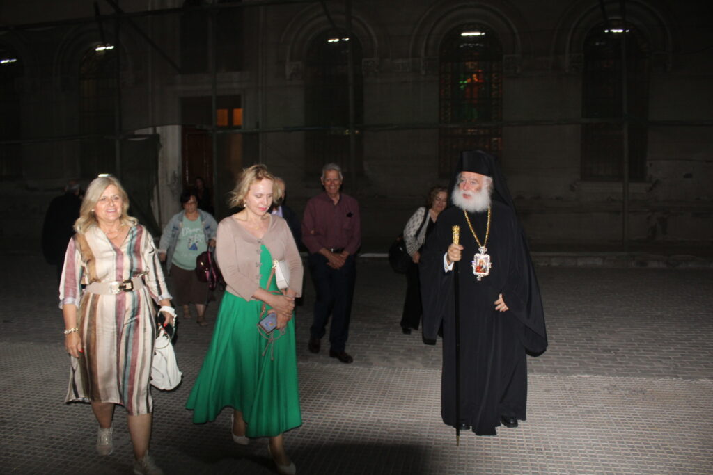 Παρευρέθη η Πρόεδρος του ΕΝΟΑ και του Πτολεμαίου Α΄ κα. Λιλίκα Θλιβίτου, οι εκπρόσωποι της Μεσσηνιακής Αμφικτιονίας, η διευθύντρια του Νηπιαγωγείου κα. Λένα Βοστάνη, ο υπέυθυνος των κοινοτικών γκαράζ κ. Γεώργιος Άστωρ, εκπαιδευτικοί και πιστοί της Παροικίας, ενώ στο τέλος με την προτροπή του Μακαριωτάτου κατευθύνθηκαν στο Αρχονταρίκι του Ναού για να συζητήσουν και να αλληλοευχηθούν τα χρόνια πολλά με καφέ και γλυκίσματα.