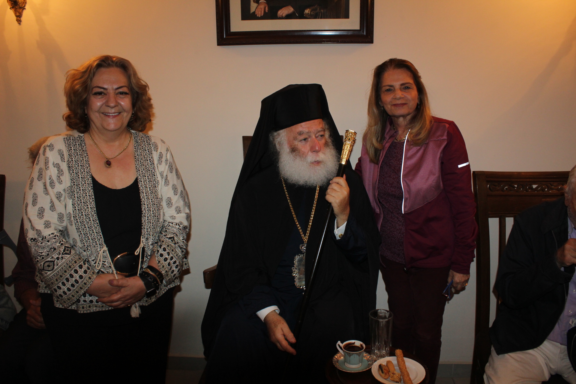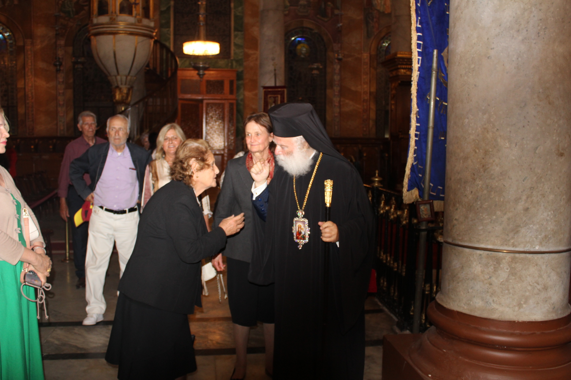 Παρευρέθη η Πρόεδρος του ΕΝΟΑ και του Πτολεμαίου Α΄ κα. Λιλίκα Θλιβίτου, οι εκπρόσωποι της Μεσσηνιακής Αμφικτιονίας, η διευθύντρια του Νηπιαγωγείου κα. Λένα Βοστάνη, ο υπέυθυνος των κοινοτικών γκαράζ κ. Γεώργιος Άστωρ, εκπαιδευτικοί και πιστοί της Παροικίας, ενώ στο τέλος με την προτροπή του Μακαριωτάτου κατευθύνθηκαν στο Αρχονταρίκι του Ναού για να συζητήσουν και να αλληλοευχηθούν τα χρόνια πολλά με καφέ και γλυκίσματα.