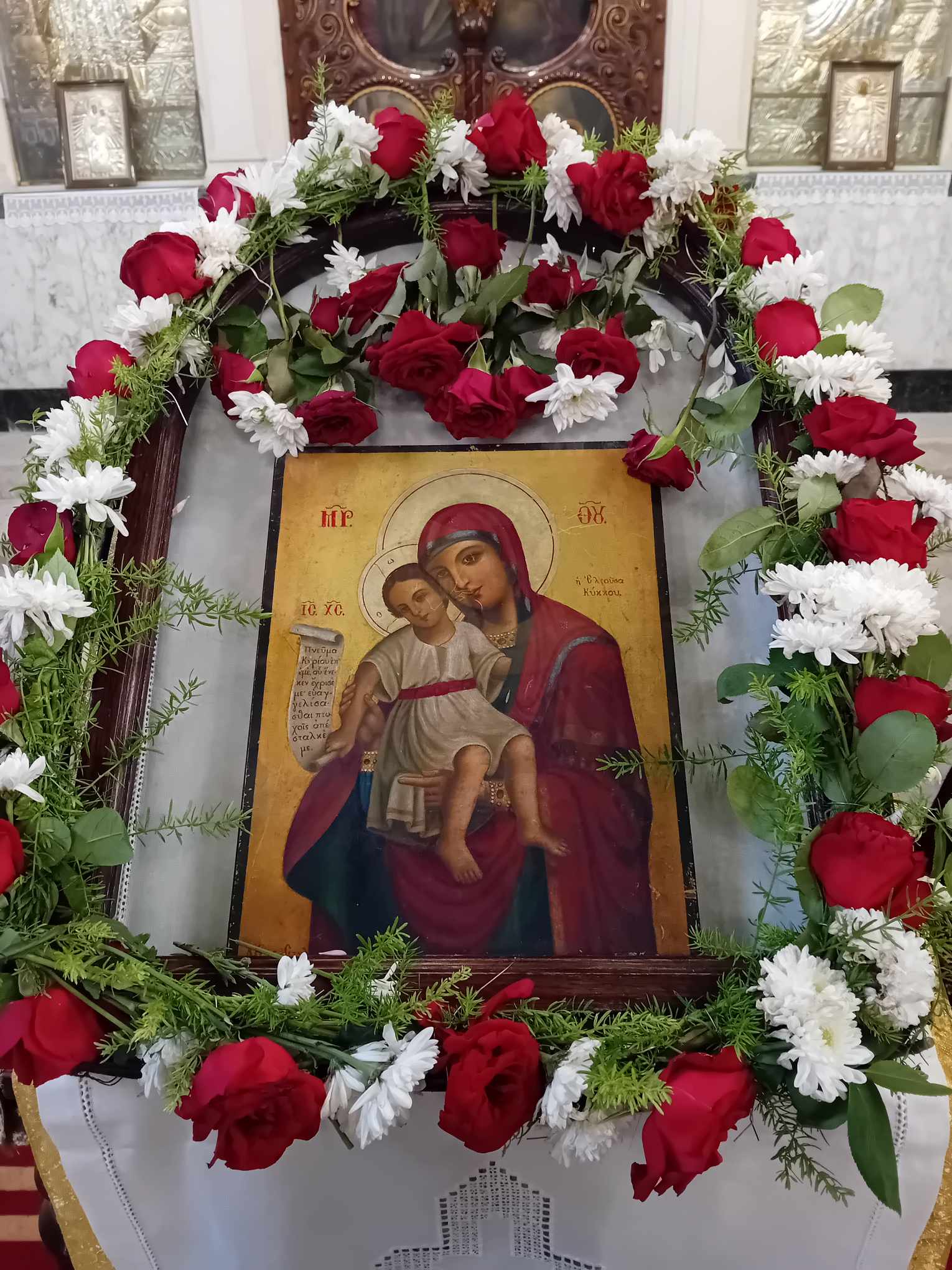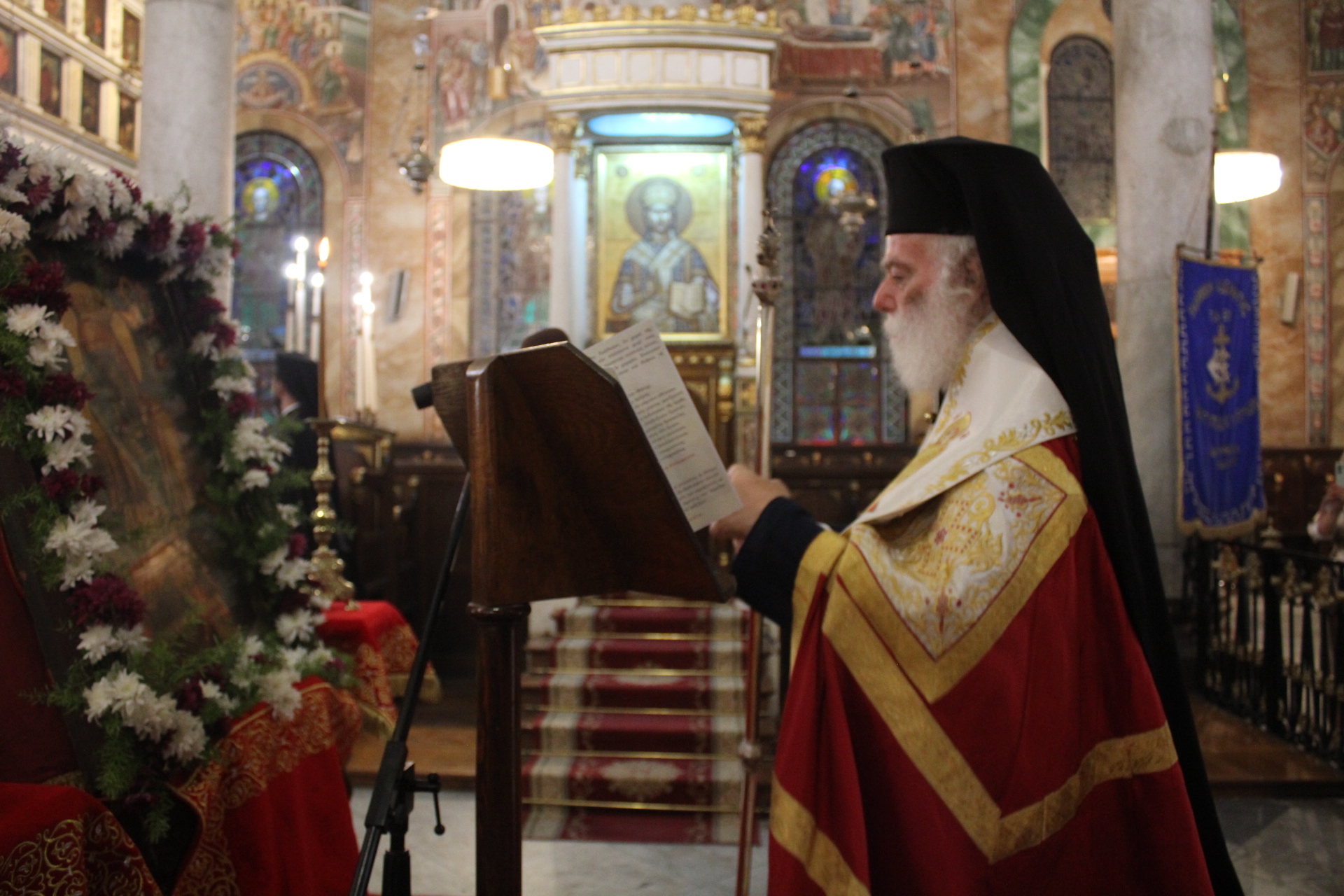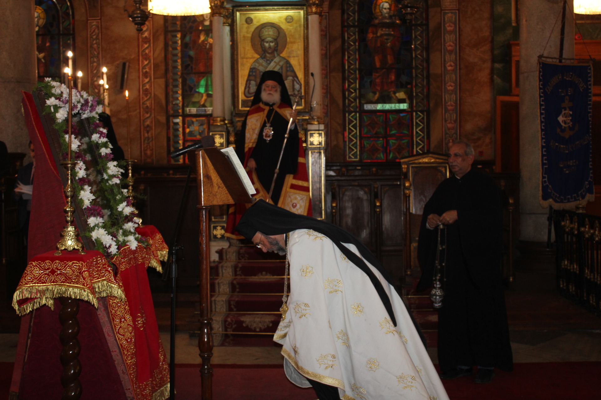 Στον Καθεδρικό Ιερό Ναό του Ευαγγελισμού η μορφή του Πάπα και Πατριάρχη Αλεξανδρείας και πάσης Αφρικής Θεοδώρου Β΄ δέσποζε ανάμεσα στους πιστούς που με κατανυκτικότητα παρακολουθούσαν τον Ιεράρχη τους να προσεύχεται όρθιος και να τους ευλογεί.